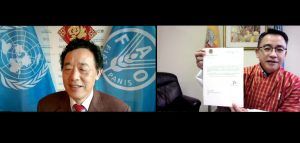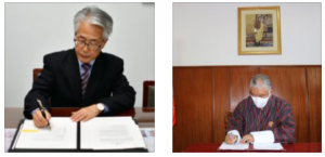 Signing of the Exchange of Notes for the Economic and Social Development Programme (Provision of Medical Equipment) under Japanโs Grant Aid Ambassador of Bhutan to Japan V. Namgyel and Ambassador ...