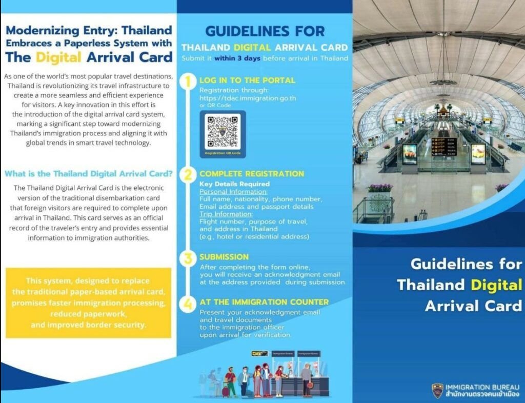 The Ministry of Foreign Affairs and External Trade hereby notifies the general public that the Immigration Bureau of Thailand has introduced the ‘Thailand Digital Arrival Card'(TDAC) to make immigration process faster, easier and more secure.