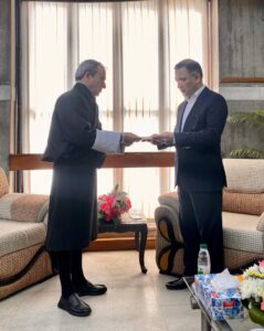 Condolence messages from His Majesty The King, His Majesty The Fourth Druk Gyalpo and the Prime Minister were handed over to Mr. Tarique Rahman, son of the late Begum Khaleda Zia and Acting Chairperson, Bangladesh Nationalist Party (BNP) by Lyonpo D.N. Dhungyel.