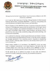 On this occasion, Hon’ble Lyonchhen Dasho Tshering Tobgay and the Foreign Minister conveyed messages reaffirming Bhutan’s continued commitment to advancing regional cooperation through BIMSTEC.