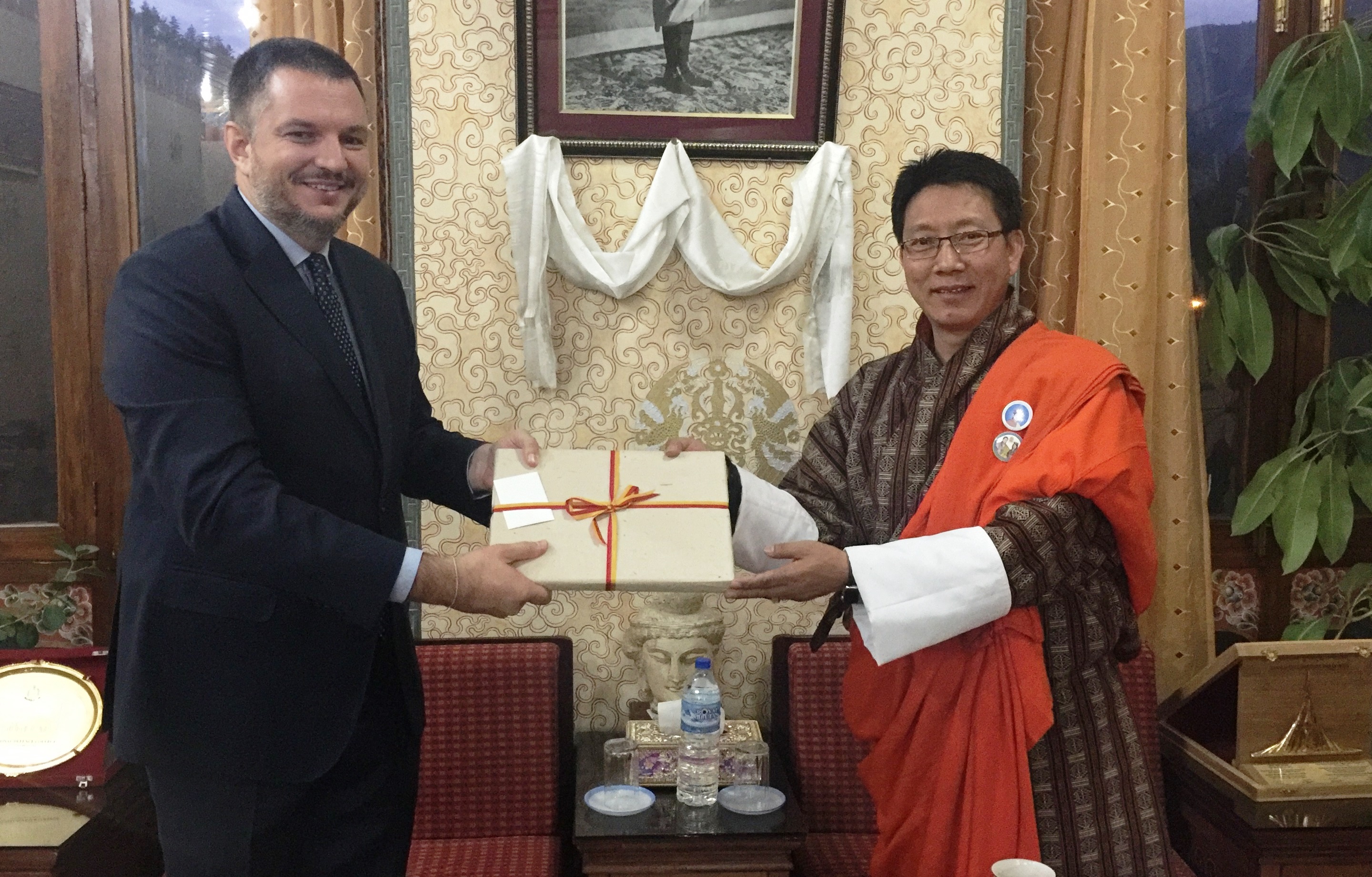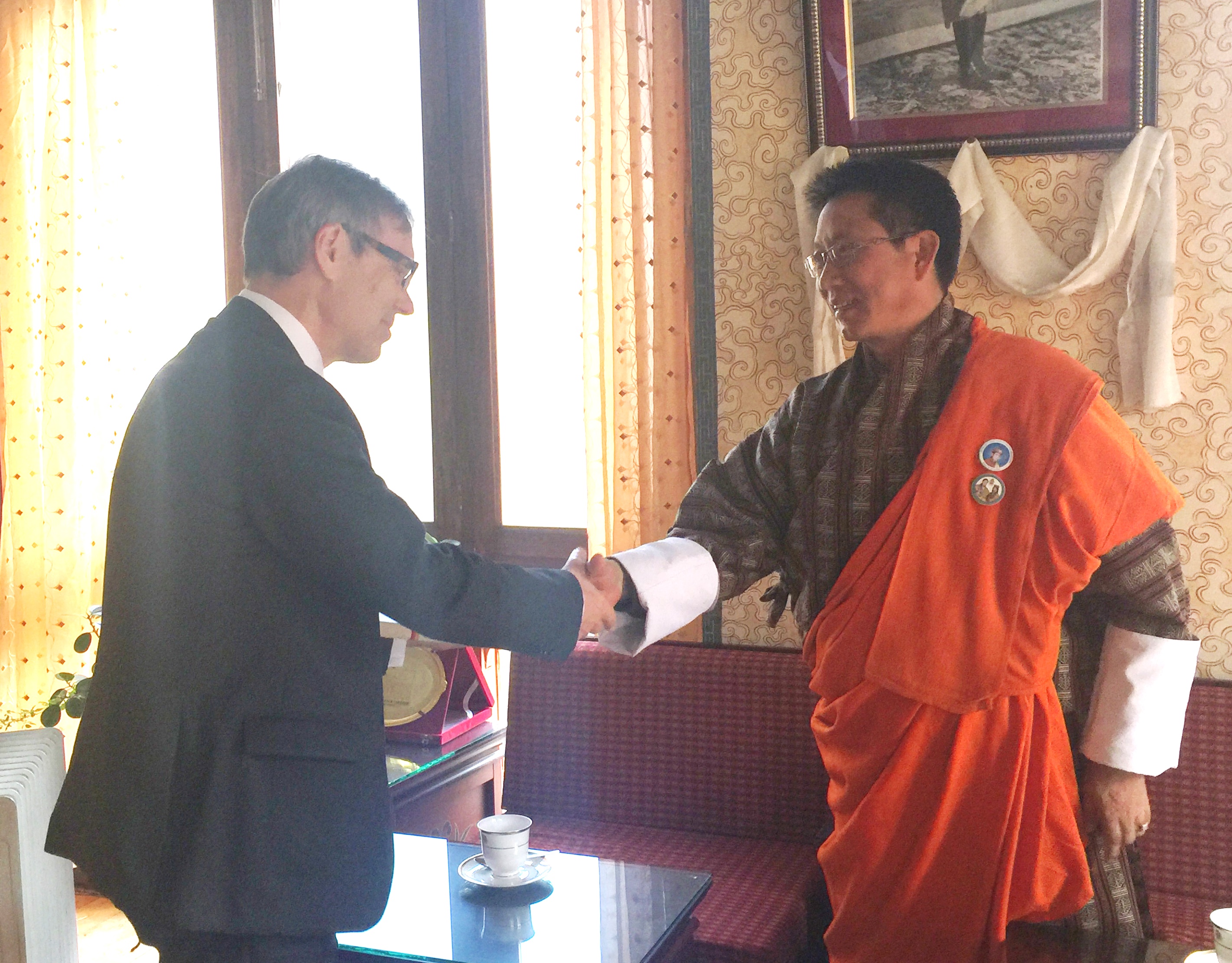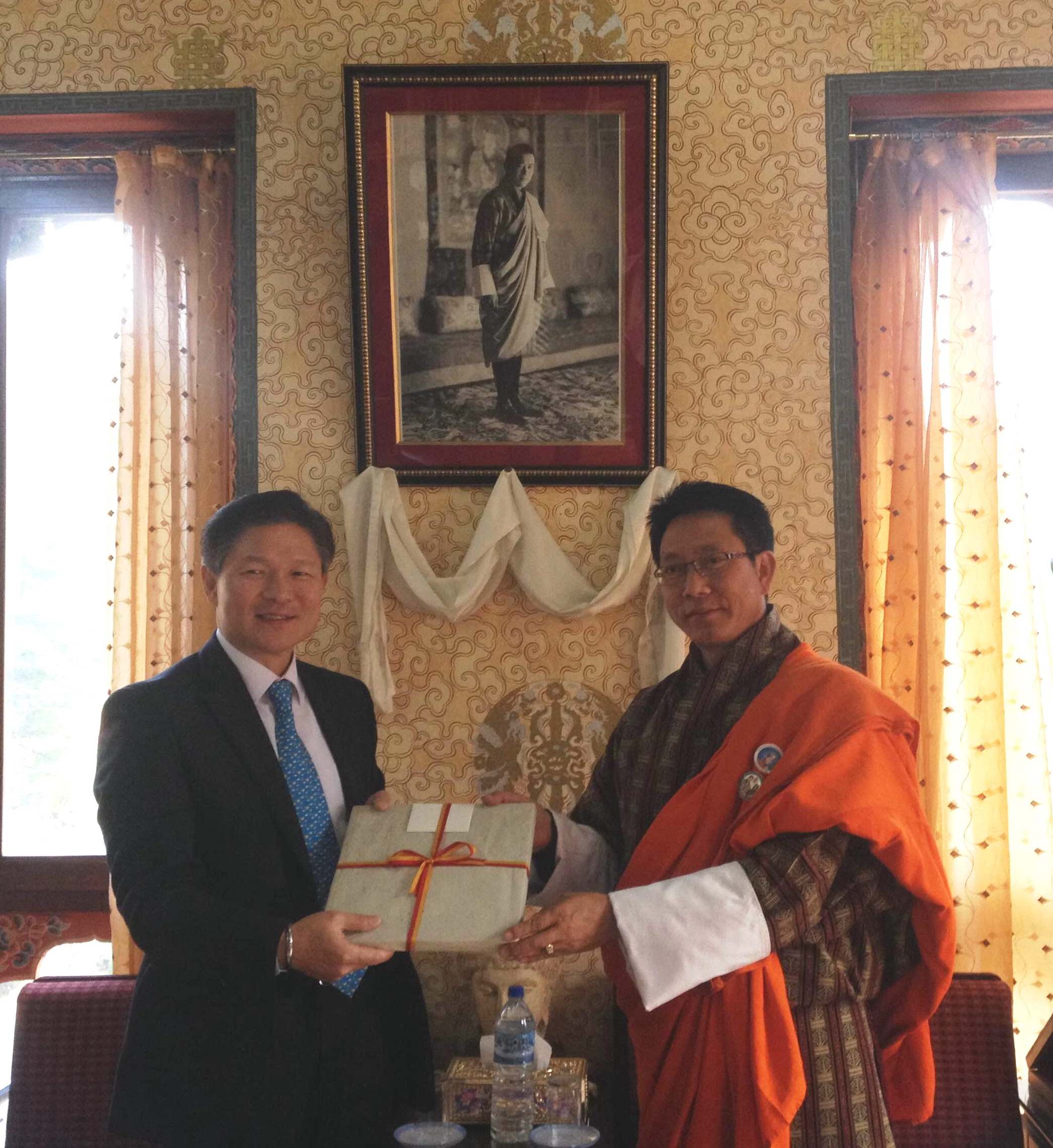 H.E. Lyonpo Damcho Dorji met with H.E. Mr. Gnchig Ganbold, Ambassador of Mongolia, H.E. Mr. Aung Khin Soe, Ambassador of Myanmar, H.E. Mr. Nils Ragnar Kamsvag, Ambassador of Norway, H.E. Mr. Ahn Seong-doo, Ambassador of the Republic of Korea on 29th February 2016. On 1st March the Foreign Minister met with H.E. Mr. Vladimir Maric, Ambassador of Serbia, and H.E. Mr. Jožef Drofenik, Ambassador of Slovenia. The new Ambassadors presented credentials to His Majesty the King on 29th February 2016.