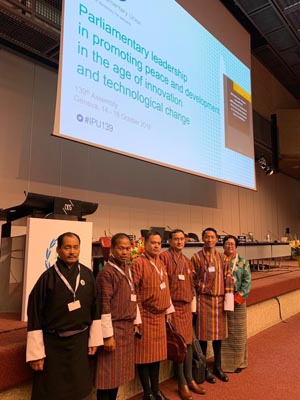 Hon’ble Jigme Wangchuk, Deputy Chairperson of the National Council led a nine-member delegation to the 139th session of the IPU Assembly and related meetings that was held in Geneva from 14-18 October 2018. Speaking on the theme of the general debate “Parliamentary leadership in promoting peace and development in the ...