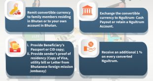 In a bid to encourage remittance inflows, the Royal Monetary Authority is pleased to announce the launch of a cash incentive scheme for Bhutanese who live, work, or study overseas. The scheme is being introduced in recognition of the significant role that remittance inflows can play in enhancing foreign currency ...