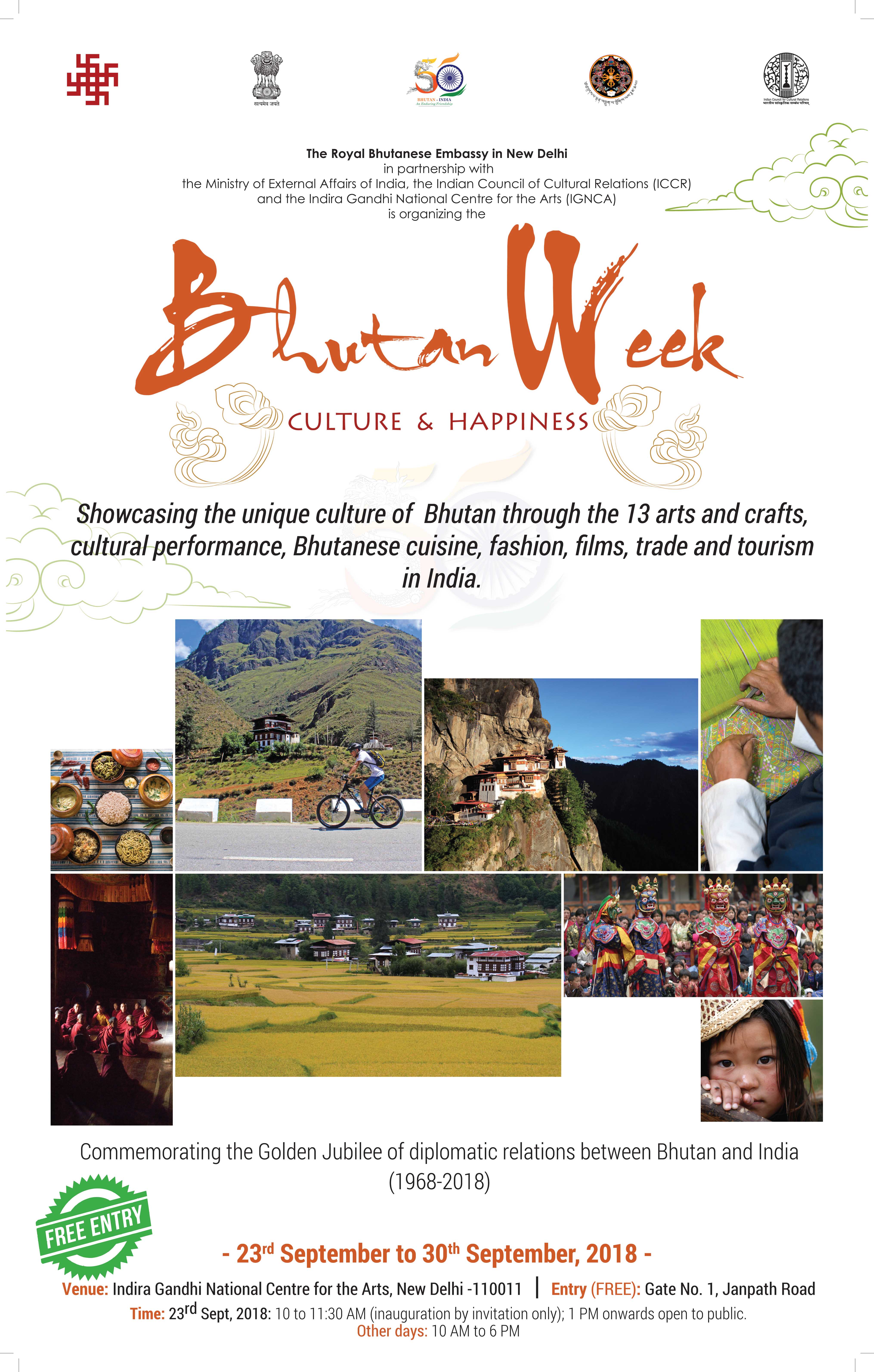 While cultural, religious and historical ties and people-to-people relations between India and Bhutan existed over many centuries, it is only 50 years since the two countries established formal diplomatic relations. Therefore, the Bhutan Week would be a timely celebration of the special friendship and cooperation between Bhutan and India. It will help to further generate greater awareness and appreciation in India of the culture, traditions and the way of life in Bhutan.