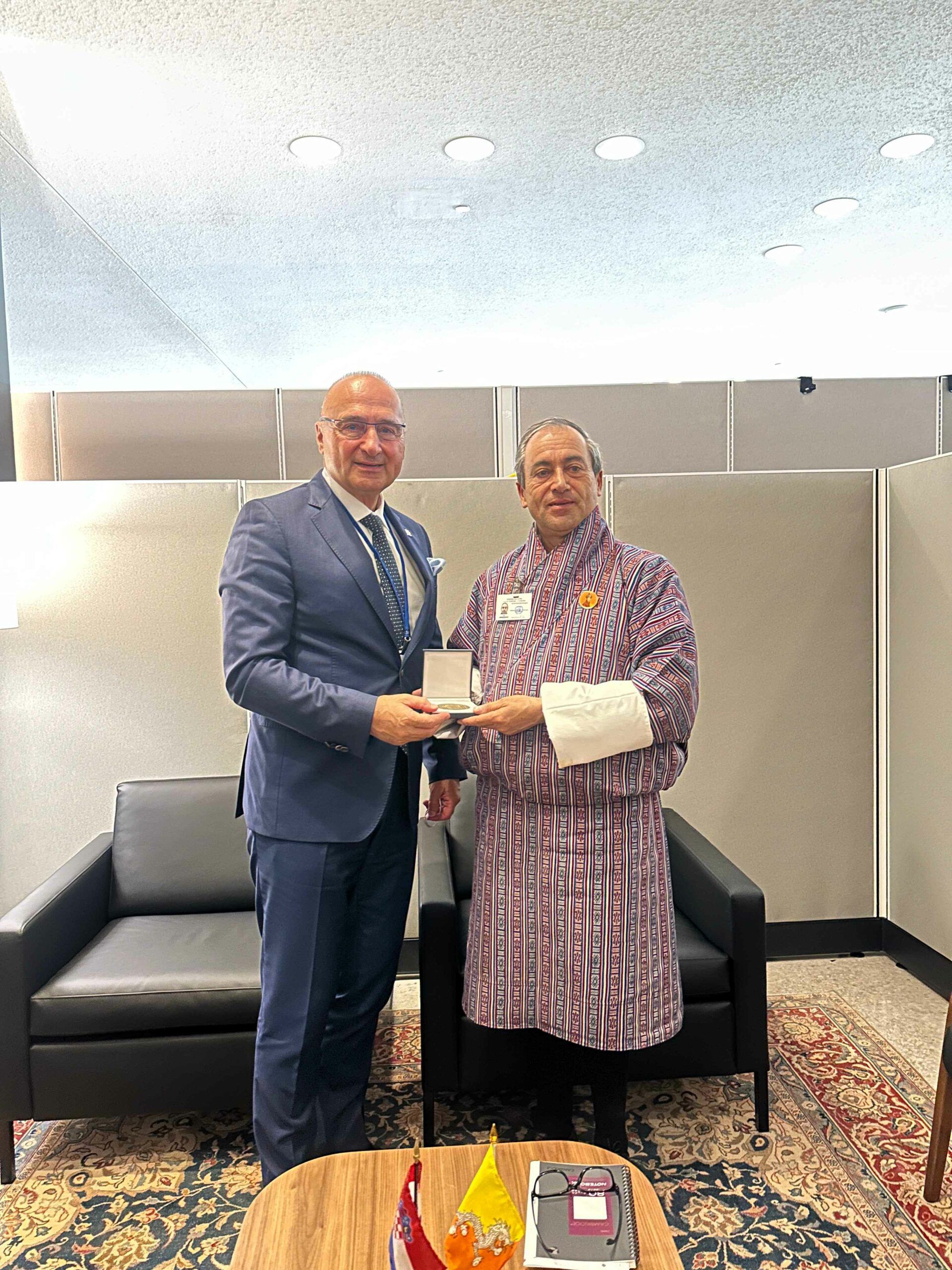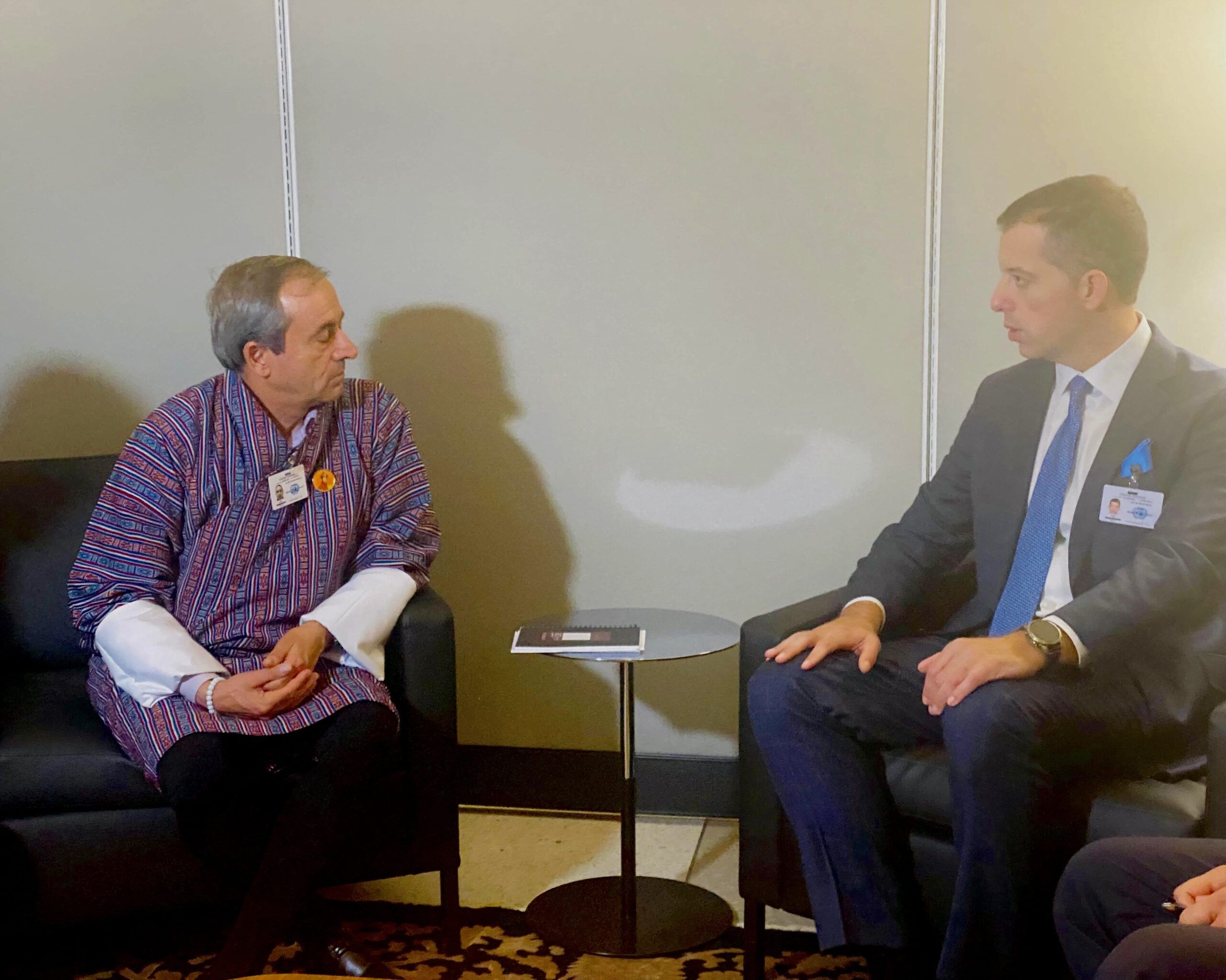 On the sidelines of the 79th United Nations General Assembly in New York, Hon’ble Lyonpo DN Dhungyel met with H.E. Mr. Gordon Grlić Radman, Minister of Foreign and European Affairs of the Republic of Croatia and H.E. Mr. Marko Durić, Minister of Foreign Affairs of the Republic of Serbia in two separate bilateral meetings on 23 September 2024. Discussions were held on the areas of mutual interest including the promotion of tourism, foreign direct investments and people to people ties.