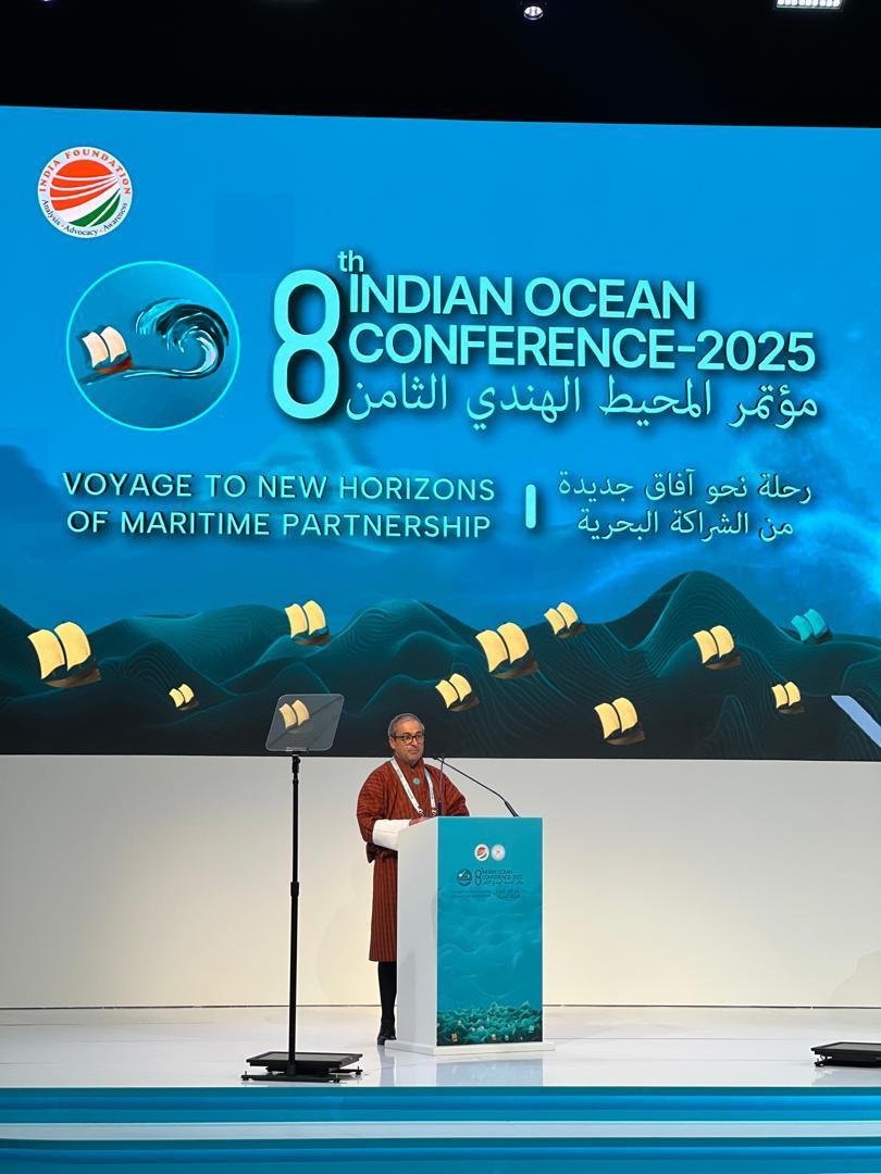 Lyonpo D.N. Dhungyel, Minister for Foreign Affairs and External Trade attended the 8th Indian Ocean Conference in Muscat, Oman from 16-17 February 2025. Established in 2016, the Conference has emerged as a flagship consultative forum for countries in the region for maritime affairs. Lyonpo participated in the session on “Voyage to New Horizons of Maritime Partnership”. In his statement, Lyonpo emphasised the critical need for improved regional connectivity, particularly for landlocked countries, and stressed the urgent imperative to tackle climate change. While in Muscat, Lyonpo met with the External Affairs Minister of India; Foreign Minister of Maldives; Foreign Minister of Nepal, Foreign Minister of Oman, Foreign Minister of Sri Lanka; and State Minister for Foreign Affairs of Japan. Lyonpo also visited the Royal Academy of Management in Muscat.