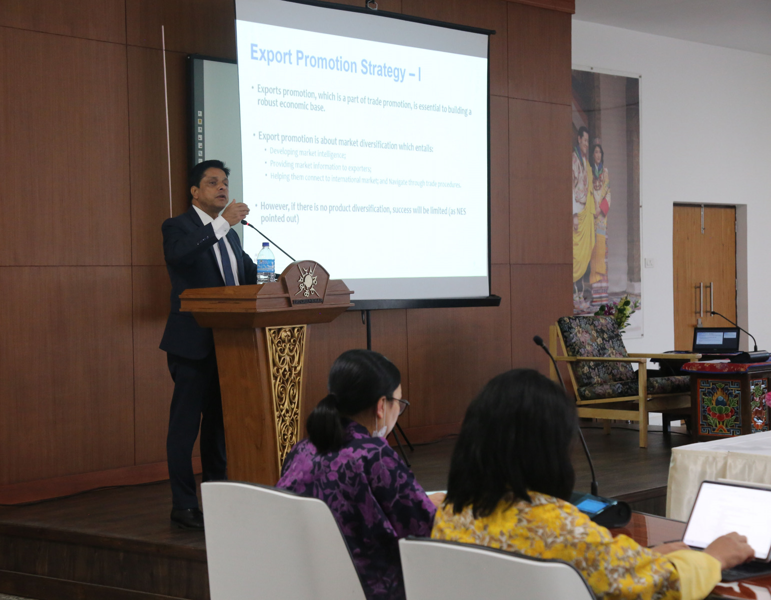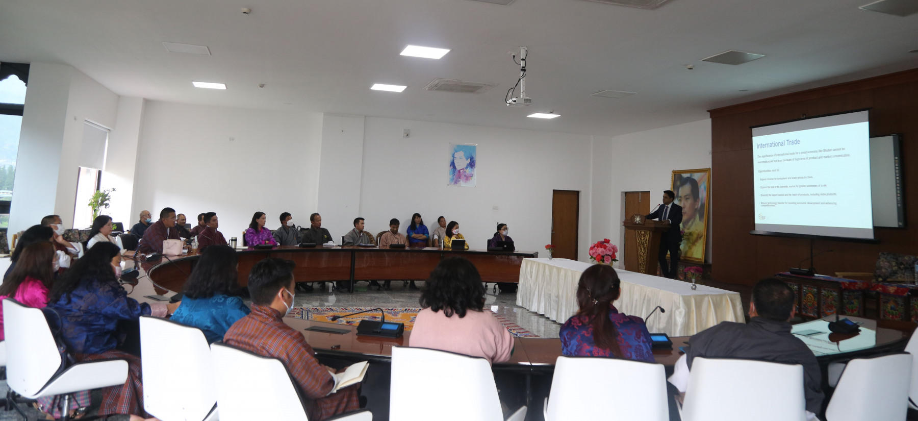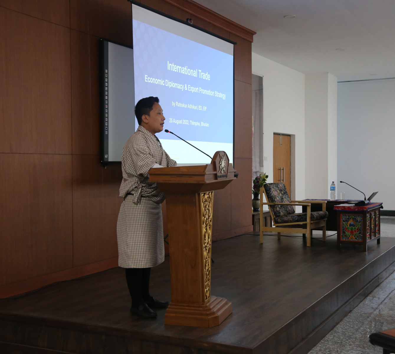 The Ministry invited Dr. Ratnakar Adhikari, Executive Director of the Executive Secretariat for the Enhanced Integrated Framework at the World Trade Organization as the distinguished speaker at the MFA Lecture Series, which was held on 25 August 2022. The Executive Director spoke on the subject, “International Trade: Economic Diplomacy and Export Promotion Strategy,” which was followed by an interactive session. The Executive Director is in the country as part of EIF Mission to Bhutan with the Ministry of Economic Affairs.