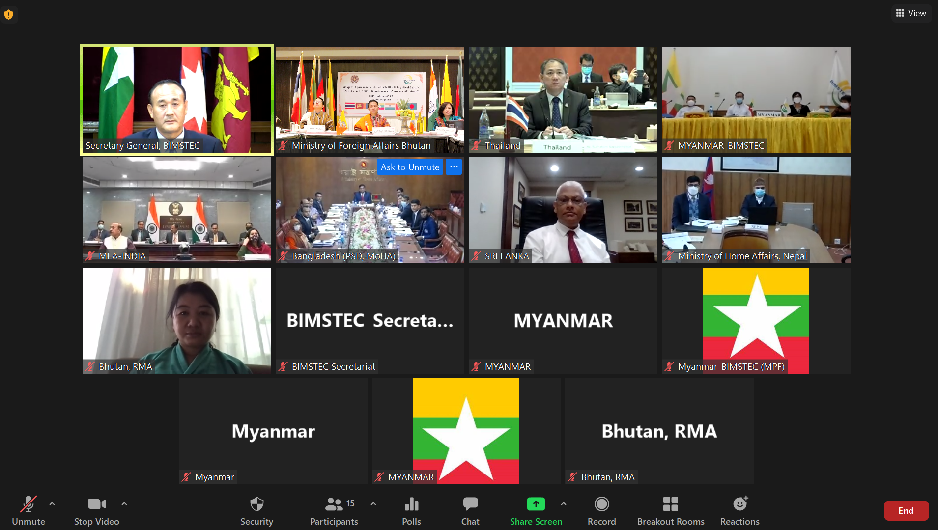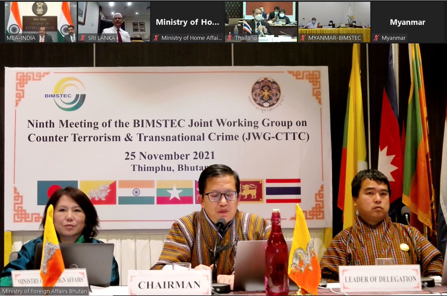 The Ninth Meeting of the BIMSTEC Joint Working Group on Counter Terrorism and Transnational Crime (JWG-CTTC) was hosted virtually by the Royal Government of Bhutan on 25 November 2021.