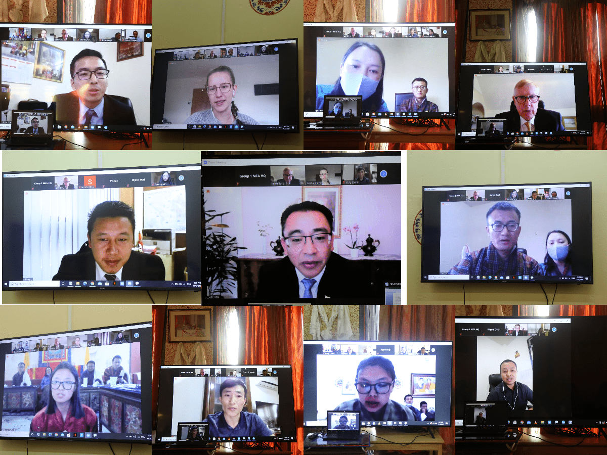 However, UNITAR remained committed and the two sides decided that the workshop be conducted virtually. Taking advantage of the virtual platform, Foreign Service Officers in the Royal Bhutanese Embassies in Delhi, Geneva, Bangkok, Dhaka, and the Royal Bhutanese Consulate in Guwahati joined the Officials in the HQ to participate in the online workshop.