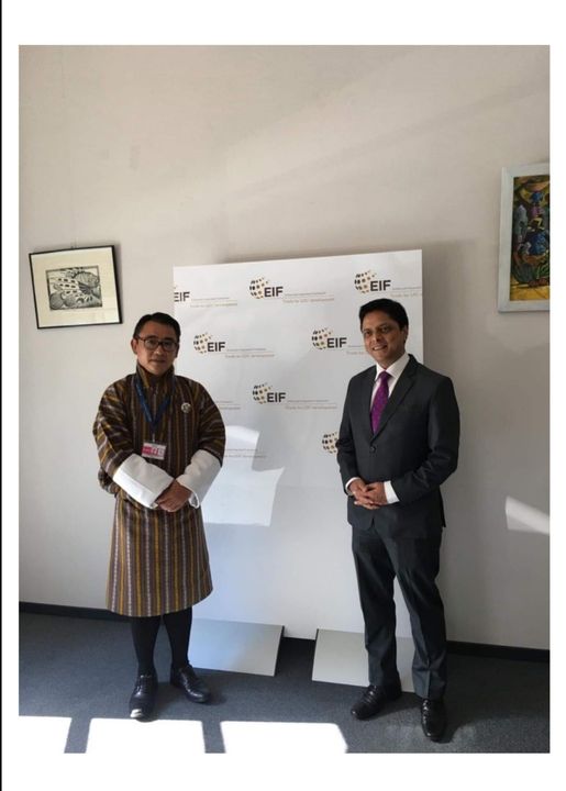 Ambassador Tenzin R Wangchuk met with Mr. Ratnakar Adhikari, Executive Director of the Enhanced Integrated Framework (EIF) on 2 September 2020. EIF Partners with Bhutan in Trade Development Projects.