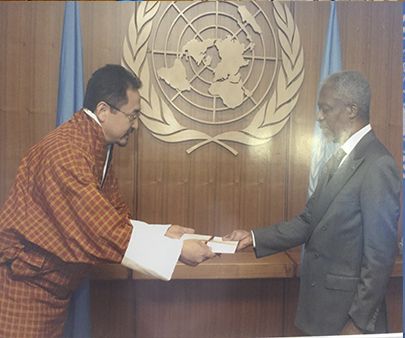Ambassador/Permanent Representative H.E. Mr Pema Lektup Dorji Ambassador/Permanent Representative List of all Former Permanent Representatives Aum Doma Tshering September 2017 to October 2022 Aum Kunzang C. Namgyel February 2014 to July 2017 Dasho Lhatu Wangchuk January 2009 to July 2013 Dasho Daw Penjor November 2003 to December 2008 Lyonpo Om Pradhan September 1998 to October 2003 Dasho Ugyen Tshering August 1989 to August 1998 Dasho Jigmi Y. Thinley October 1987 to July 1989 Lyonpo Dago Tshering May 1984 to September 1987 Lyonpo Om Pradhan February 1980 to April 1984 Lyonpo Dago Tshering December 1974 to January 1980 Lyonpo Sangay Penjor September 1971 to December 1973 2021-12-16 Tashi Choden