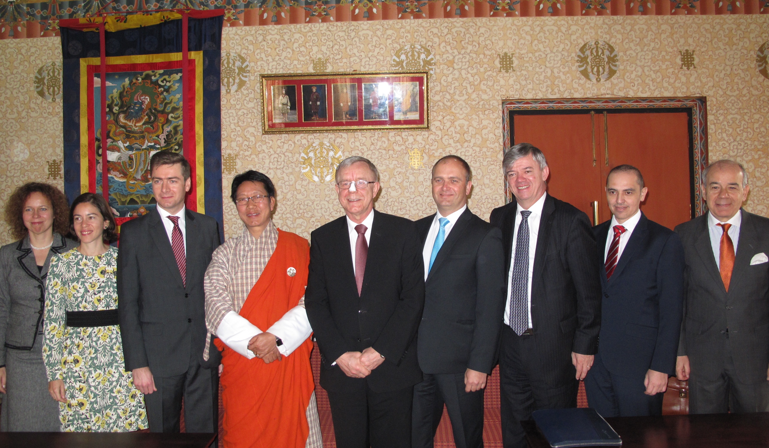 A delegation of Ambassadors of the European Union led by H.E. Mr. Tomasz Kozlowski, EU Ambassador to Bhutan called on the Hon’ble Foreign Minister Lyonpo Damcho Dorji on 31st January 2017 at the Gyelyong Tshokhang. The EU Ambassadors delegation visited Bhutan from 30 January – 3 February 2017. During the visit, the delegation received the honor of audiences with both His Majesty the King and His Majesty the Fourth Druk Gyalpo. The delegation also called on Hon’ble Lyonchhen, the Speaker of the National Assembly, Minister of Agriculture & Forests, Leader of Opposition; and met with officials from the GNH Commission, Center for Bhutan Studies and Bhutan Chamber of Commerce & Industry. Official meals were also hosted for the delegation.