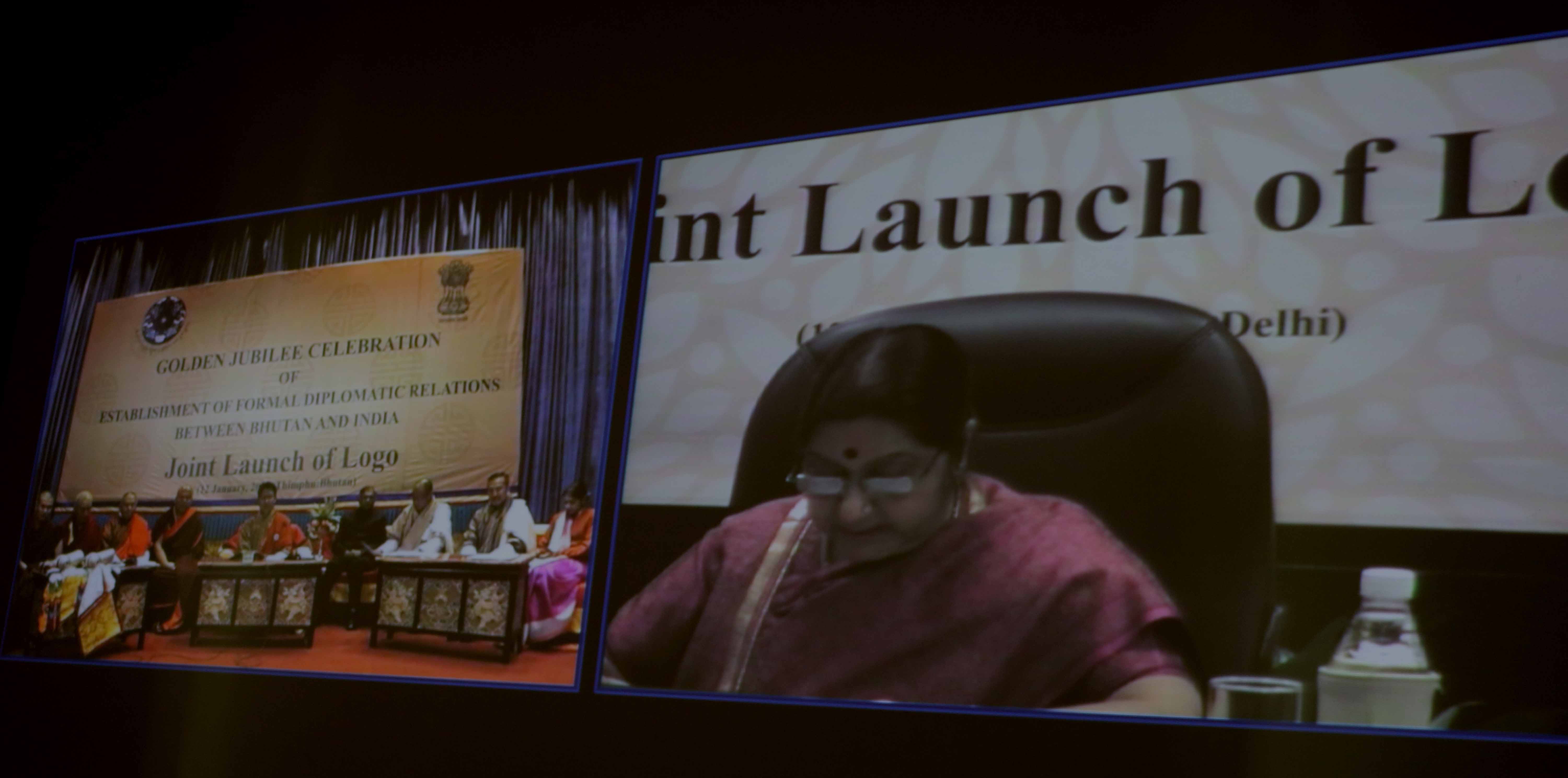 The year 2018 marks the 50th Anniversary of the establishment of formal diplomatic relations between Bhutan and India. To formally launch the historic ocassion, H E Lyonpo Damcho Dorji, Foreign Minister of Bhutan and Shrimati Sushma Swaraj, External Affairs Minister of India jointly unveiled the ‘logo for the Golden Jubilee Celebrations in Thimphu and New Delhi through video conference today.