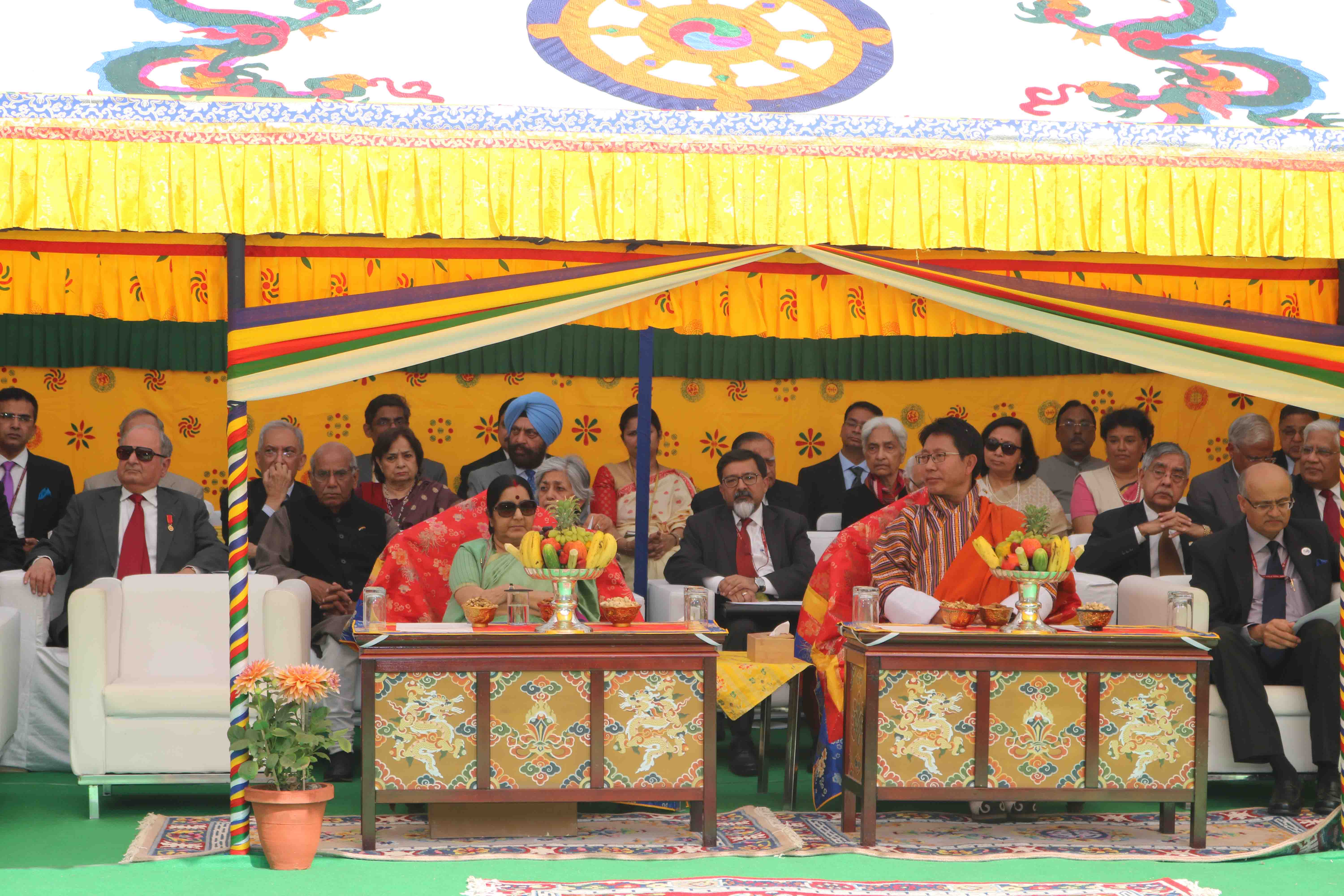 In her remarks, Her Excellency Shrimati Sushma Swaraj on behalf of the Government and the people of India, extended warmest greetings to His Majesty The King on the joyous occasion of His Majesty’s birthday and wished His Majesty good health, happiness and continued success in His pursuit of peace and prosperity for the friendly people of Bhutan. Her Excellency Shrimati Sushma Swaraj stated that India is proud of the special and exemplary ties of friendship and cooperation between the two countries, which are built on shared values and aspirations, utmost trust and mutual respect. Her Excellency said that relations between India and Bhutan is a unique partnership built on the historical and cultural linkages and stated that 2018 is a milestone moment for India-Bhutan partnership as the two countries celebrate the accomplishments of the last five decades of our time-tested and special ties. Her Excellency Shrimati Sushma Swaraj, on behalf of the Government and the people of India, also reaffirmed India’s abiding commitment to nurture and advance the special and privileged partnership with Bhutan.