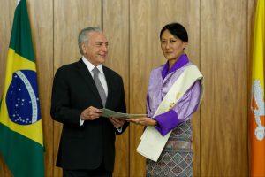 Bhutan’s first Ambassador to the Federative Republic of Brazil, Ambassador Doma Tshering, presented her letter of Credence to the President of the Republic, H.E. Mr. Michel Temer, on 25th April 2018. The credentials ceremony took place at the Palacio do Planalto, Presidential Palace, in Brasilia. The presentation of credentials marks the official assumption of duties as Ambassador Extraordinary and Plenipotentiary of Bhutan to Brazil.