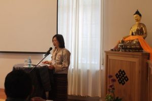 Presentations on the topic of the day “Buddhism in Bhutan – past and present” were made by three speakers: Mr. Gregor Verhufen, Vice President of the German Bhutan Himalaya Society and Buddhist scholar; Lama Kelzang from the Kamalashila Institute for Buddhist Studies and Meditation in Langenfeld, Germany; and Mr. Samten Yeshi, a Masters’ degree student at the Central European University, Hungary.
