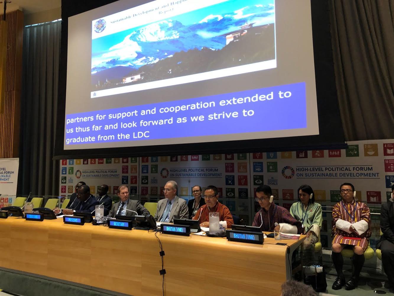 Bhutan presented its Voluntary National Review (VNR) on the implementation of the 2030 Agenda and Sustainable Development Goals on Tuesday 17thJuly 2018. Bhutan was among 47 other UN Member States presenting their VNR to the High-Level Political Forum (HLPF) under the auspices of ECOSOC at the United Nations in New York.