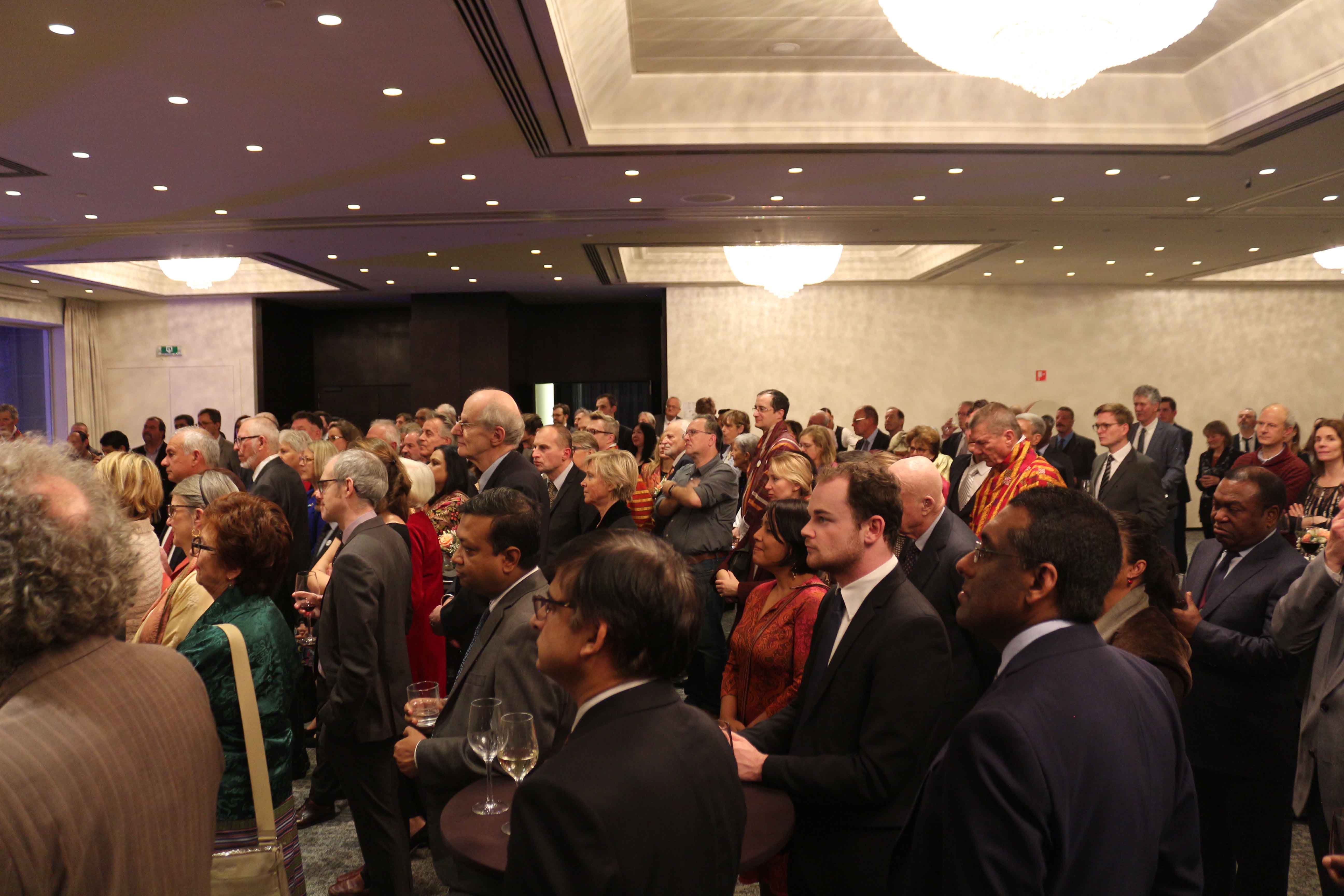 The reception was attended by around 250 people including members of the diplomatic corps, the Belgian government, the European Union, and business community and academia in Belgium, Buddhist Union in Belgium, Honorary Consuls of Bhutan from Germany and the Netherlands, officials from other EU member states, members of the friendship societies of Bhutan from France, Hungary, Italy, the Netherlands, Germany, Sweden and the United Kingdom, as well as Bhutanese students and residents from other European countries.