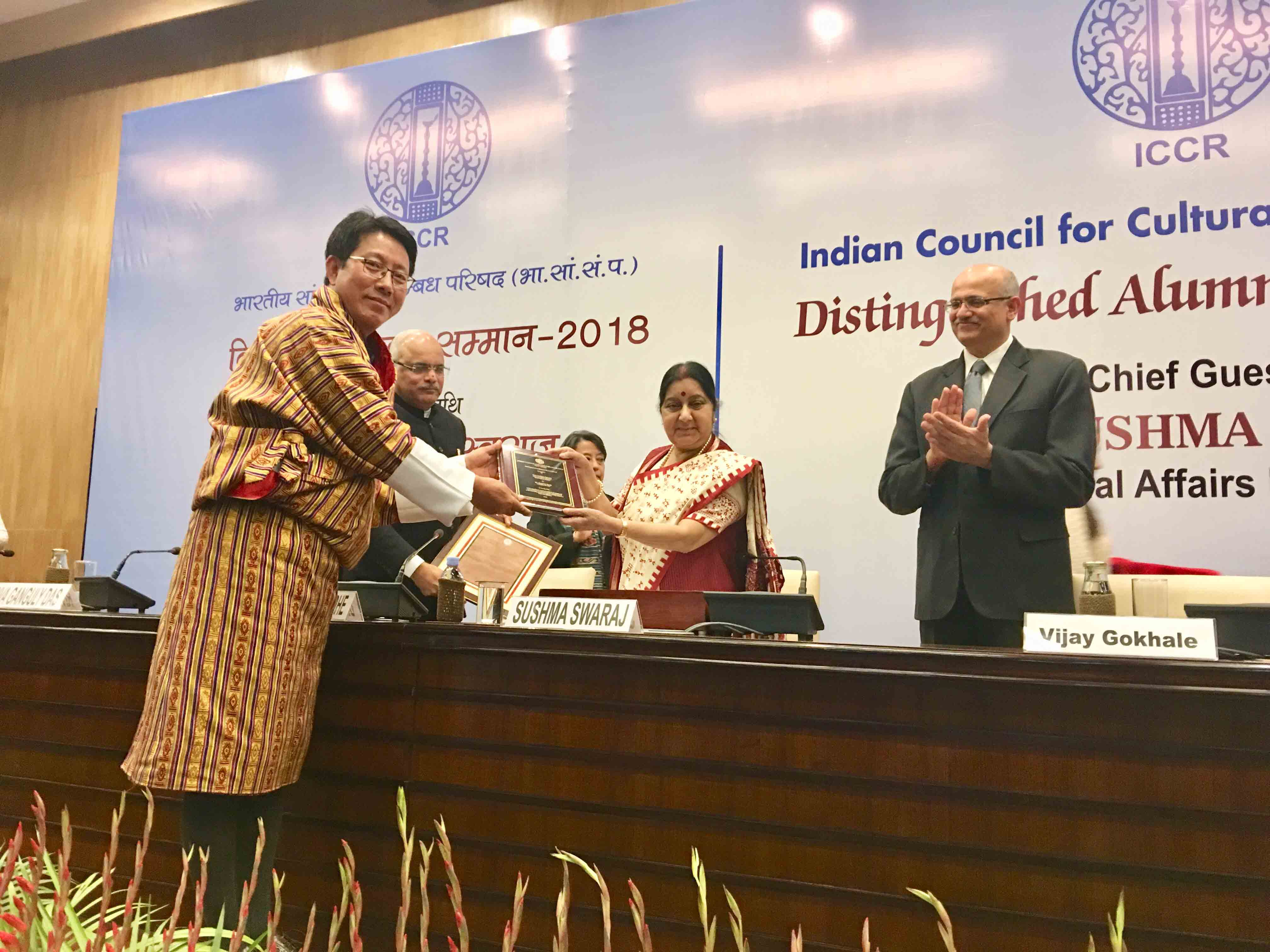The Distinguished Alumni Award was presented to Lyonpo Damcho Dorji for his contribution in promoting goodwill and friendship between India and Bhutan. He is the first person to receive the ICCR’s Distinguished Alumni Award from Bhutan.