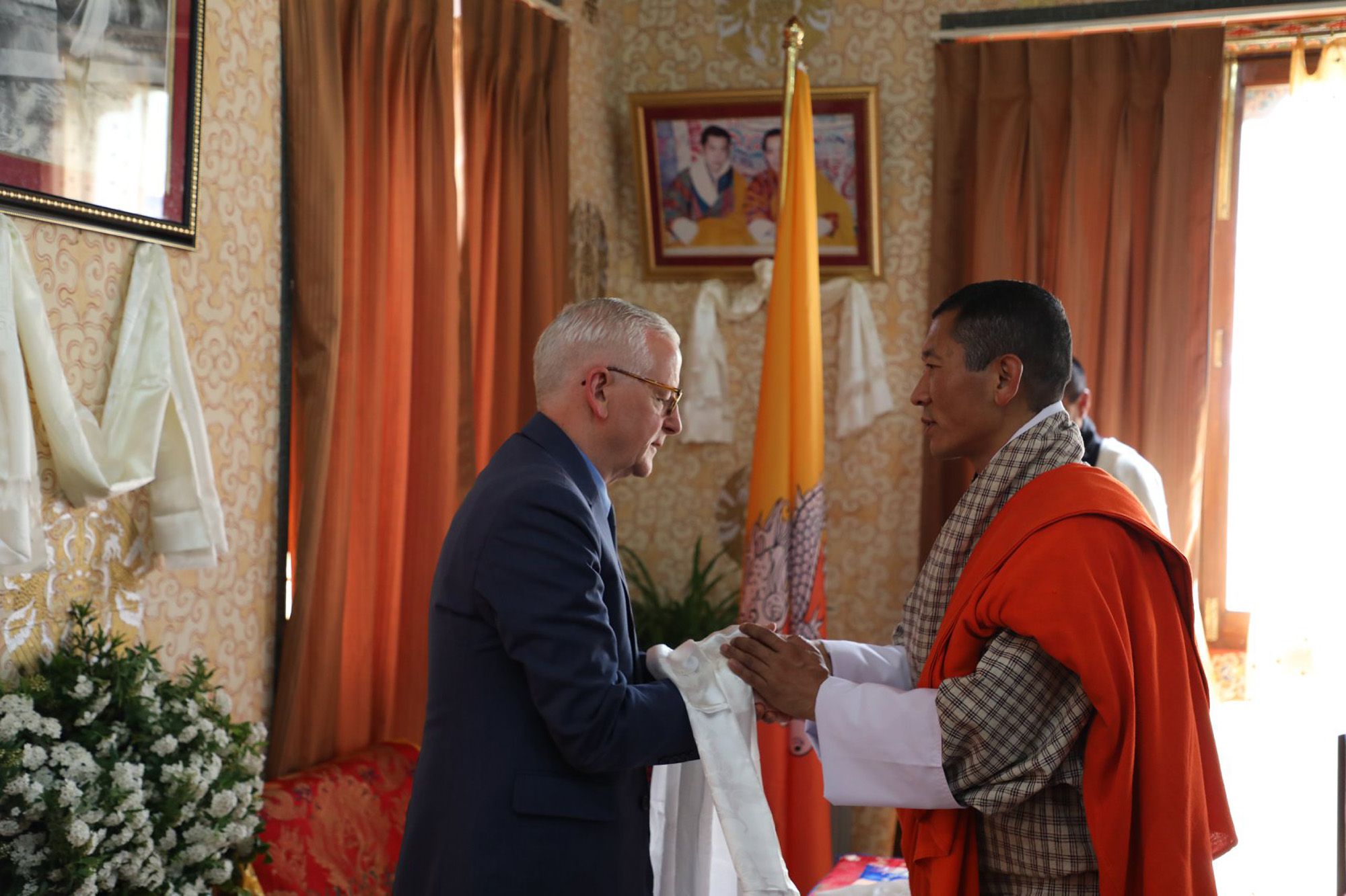 The Resident Coordinator of the United Nations system’s operational activities for development in Bhutan, Mr. Gerald James Daly, presented his Credentials to the Hon’ble Prime Minister, Lyonchhen (Dr.) Lotay Tshering at the Gyalyong Tshogkhang today.