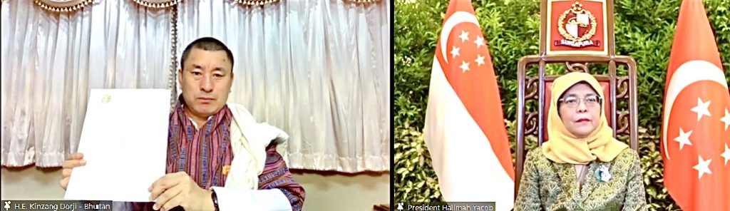 Kutshab Kinzang Dorji presented his Letter of Credence to H.E. Madam Halimah Yacob, President of the Republic of Singapore on 11th November 2021, accrediting him as the Ambassador Extraordinary and Plenipotentiary of the Kingdom of Bhutan to the Republic of Singapore. The ceremony was held virtually in view of the travel restrictions due to the COVID19 pandemic.