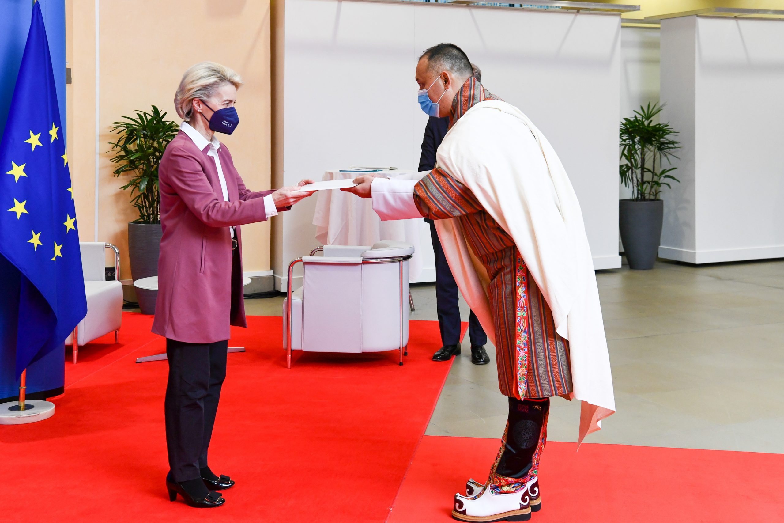 President von der Leyen welcomed Ambassador Tshering Gyaltshen Penjor’s appointment and said that Bhutan and the European Union shared common interests. She commended Bhutan’s leadership in dealing with the pandemic and its exemplary leadership on climate change.