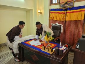 Coinciding with the auspicious Zakar, H.E. Mr. Jigme Thinlye Namgyal assumed the post of the Consul General of the Royal Bhutanese Consulate General, Guwahati, in a small Tendrel ceremony. Prior to this appointment, he served as the Director General, Department of Disaster Management under the Ministry of Home and Cultural Affairs. He was also the member secretary of the National Covid-19 Task Force.