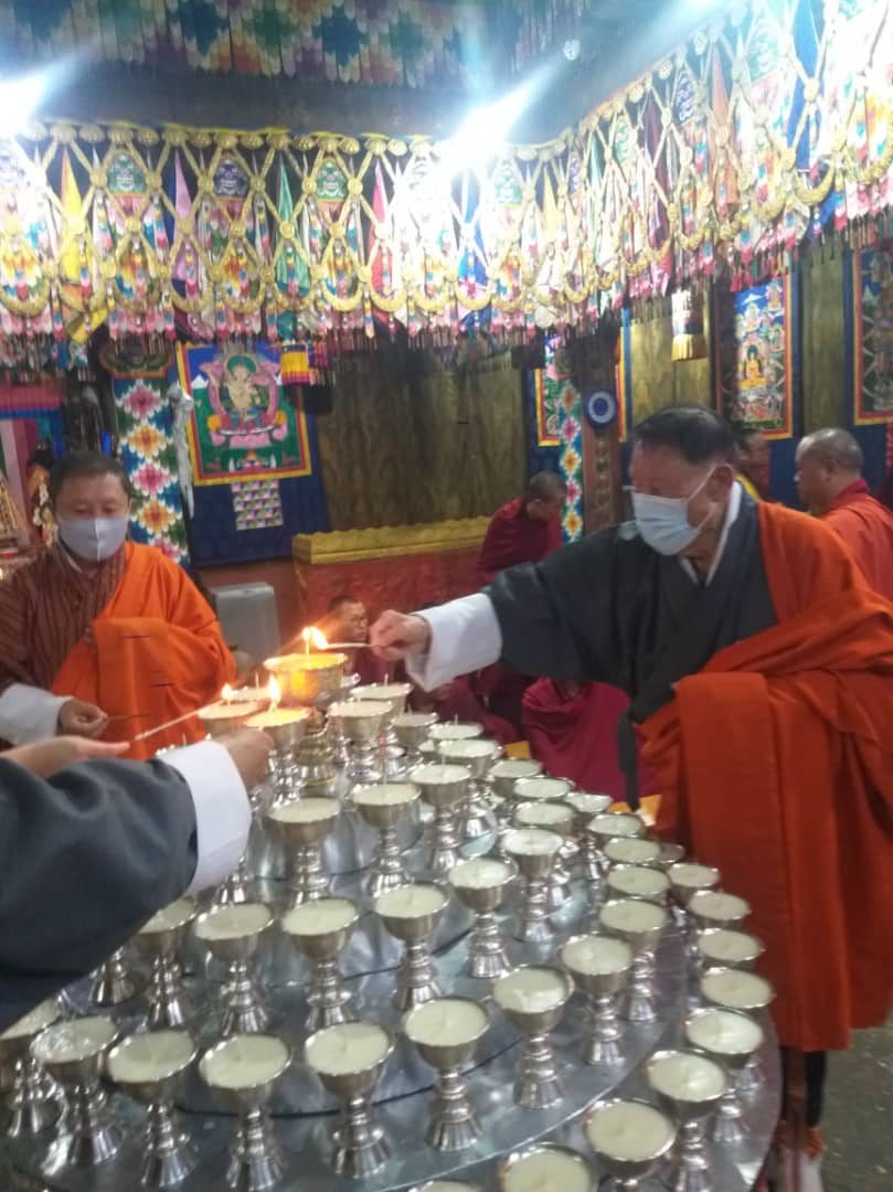 His Majesty’s Secretariat organized a ceremony to offer 1000 butter lamps and prayers for the late His Serene Highness Prince Bhisadej Rajani of Thailand at Simtokha Dzong today. Lyonpo Chenkyab Dorji, Chairman of the Royal Privy Council, Foreign Minister Lyonpo Dr Tandi Dorji, former Ambassadors of Bhutan to Thailand, senior government officials, officials from the Royal Thai Honorary-Consulate General, and Thai nationals in Bhutan attended the ceremony.