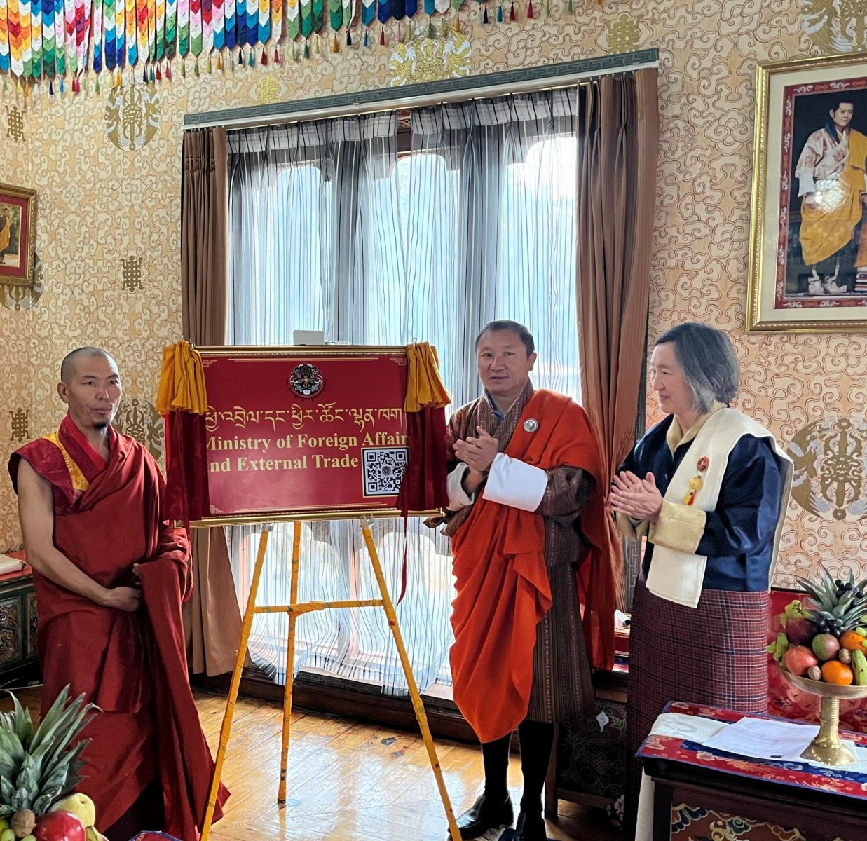 A tendrel ceremony was held this morning to mark the renaming of the Ministry as the Ministry of Foreign Affairs and External Trade, in accordance with Chapter 2, Section 8 of the Civil Service Reform Act of Bhutan 2022. This aligns with the mandate of the Ministry to enhance, coordinate and lead economic diplomacy activities with a stronger focus on economic interest, science, technology and innovation. The ceremony was graced by Hon’ble Foreign Minister Dasho (Dr.) Tandi Dorji.