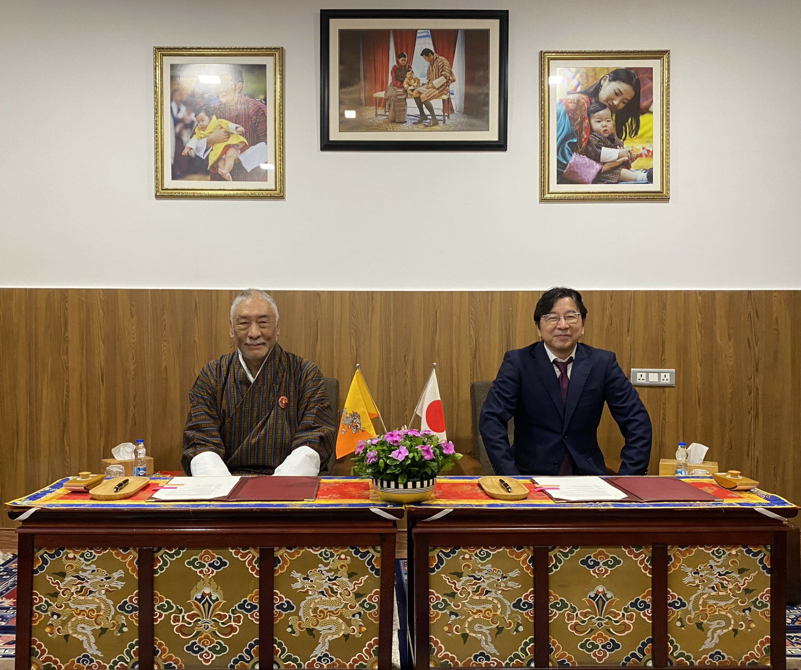 Ambassador of Bhutan to Japan V. Namgyel and Chargé d’Affaires, a.i. of the Embassy of Japan in New Delhi Mr. Kawazu Kunihiko signed the Grant Contract for the Project for the Development of the Institute of Wellbeing for Addiction Control
