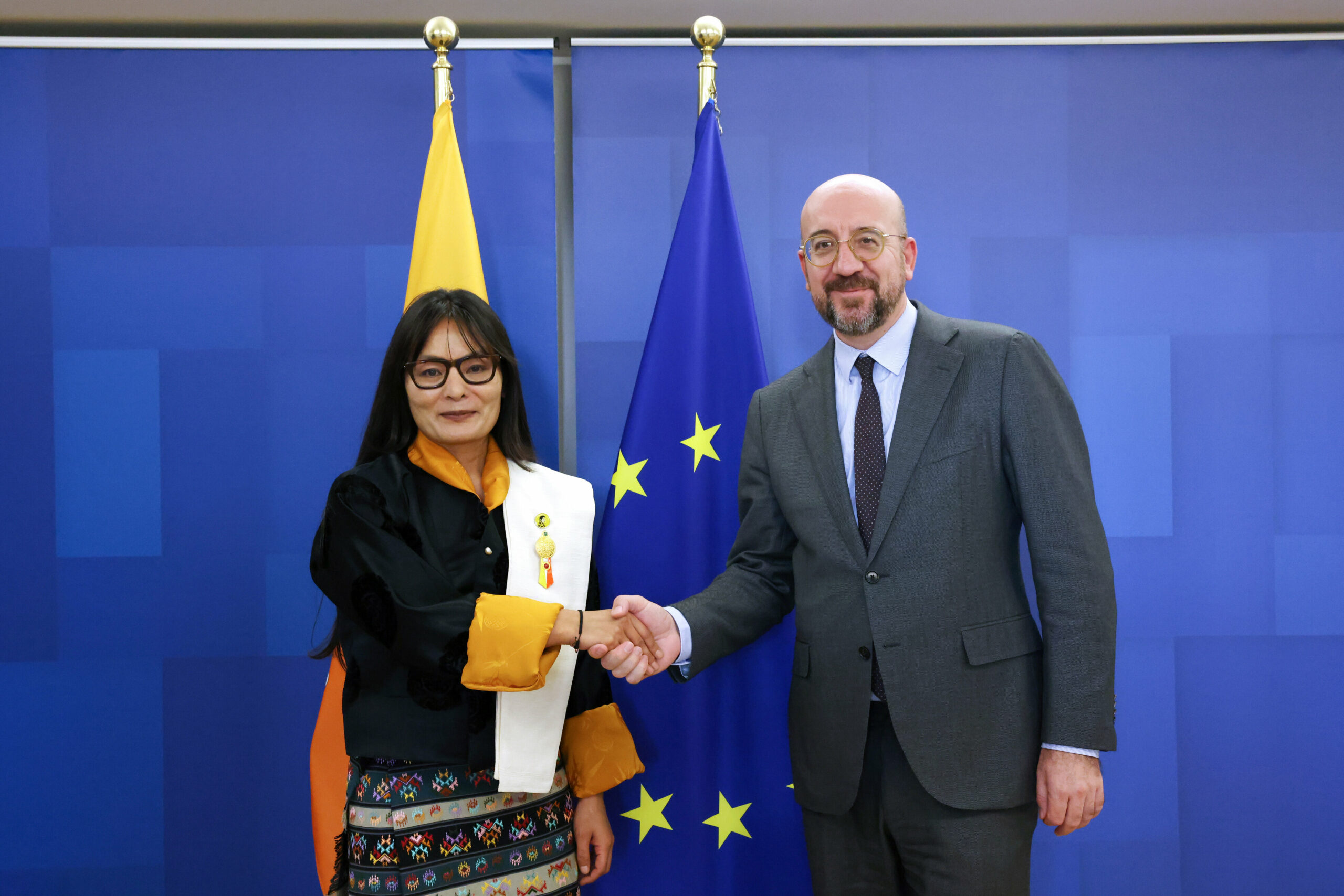 Ambassador Tshoki Choden presented her Letters of Credence to Mr. Charles Michel, President of the European Council on 7 November 2023, accrediting her as Ambassador of the Kingdom of Bhutan to the European Union.