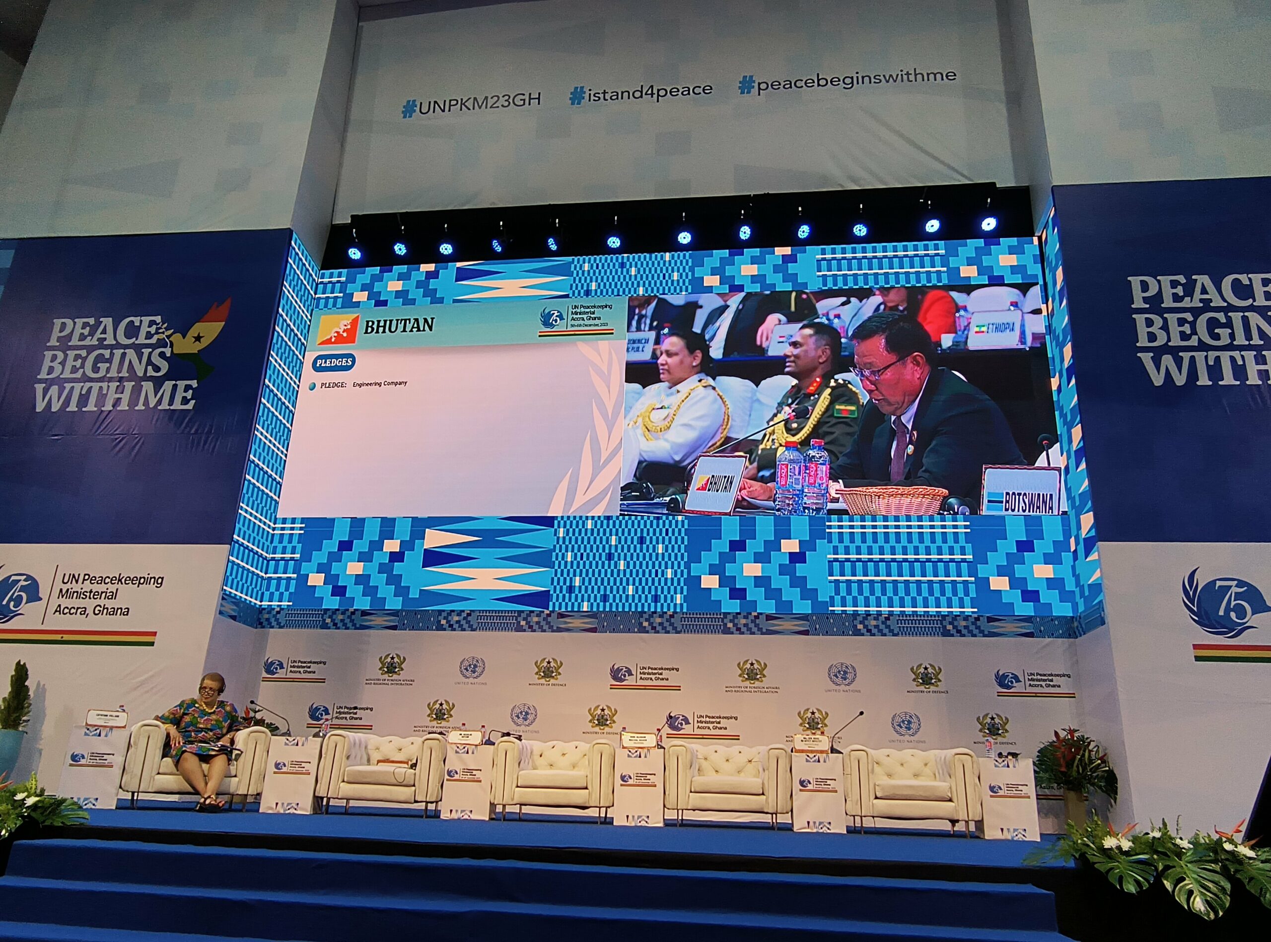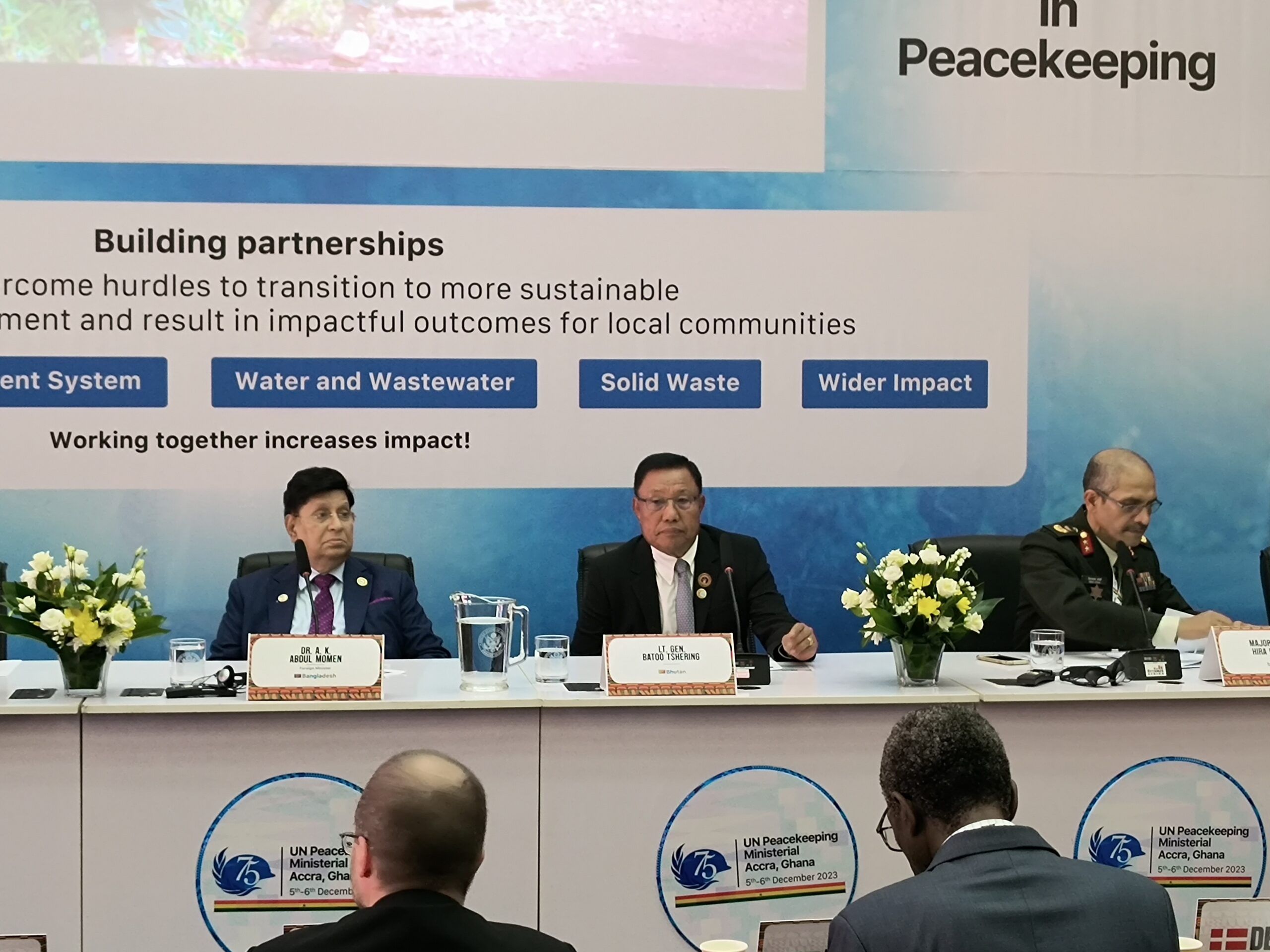 Chief Operations Officer of the Royal Bhutan Army Lt. General Batoo Tshering led Bhutan’s delegation at the 2023 United Nations Peacekeeping Ministerial held in Accra, Ghana from 5 – 6 December 2023. Bhutan’s participation at the United Nations Peacekeeping Ministerial in Ghana reinforces our commitment to the peacekeeping agenda and is in line with our desire to contribute meaningfully to the cause of peace and security. Bhutan also participated in a panel discussion on ‘Environmental Management Partnerships in Peacekeeping’ held on the sidelines of the Ministerial meeting.