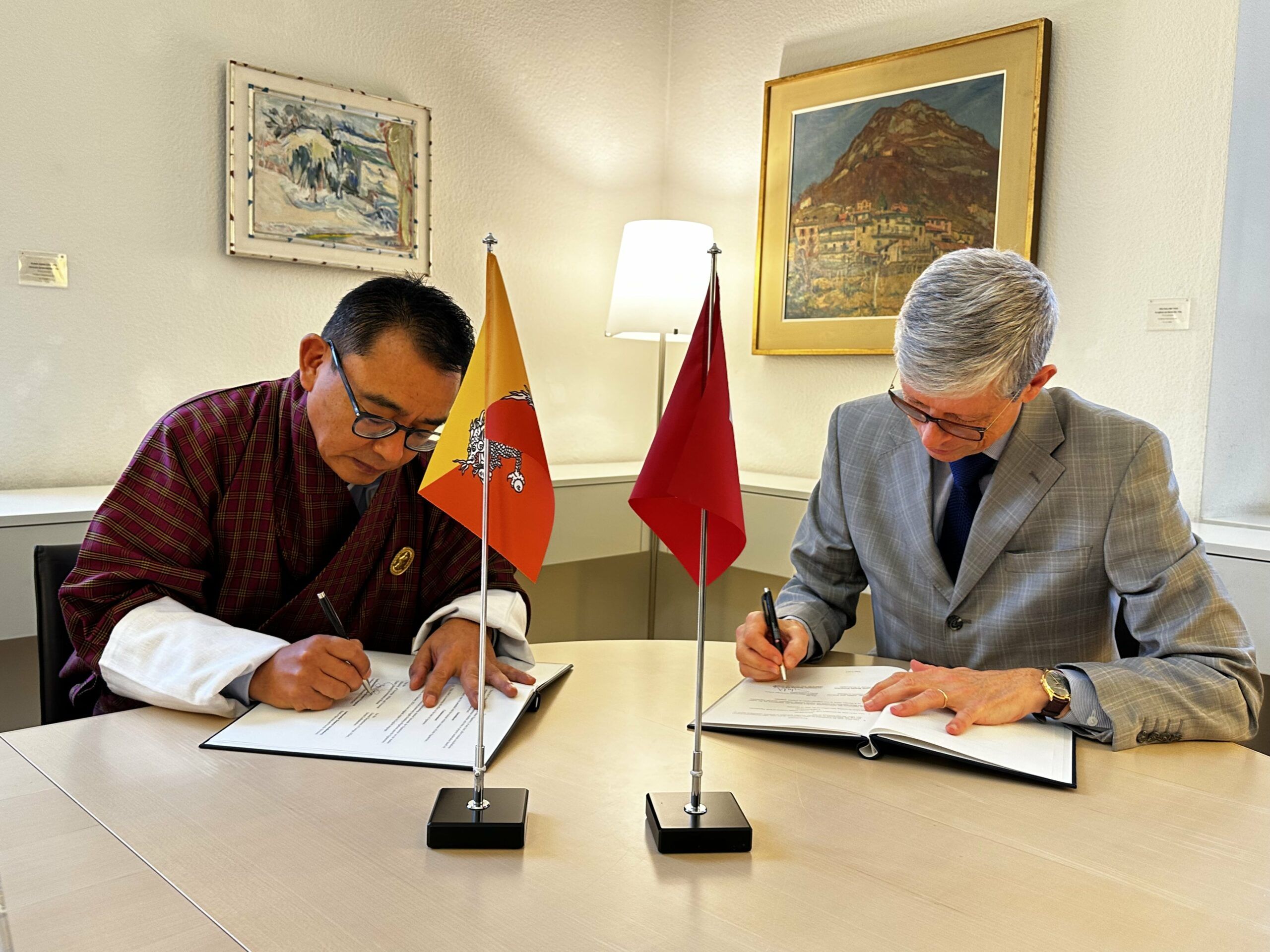The MoU was signed by Ambassador Tenzin Rondel Wangchuk, on behalf of the Ministry of Foreign Affairs & External Trade, RGoB, and Ambassador Heinrich Schellenberg, Head of the Asia and Pacific Division, on behalf of FDFA.