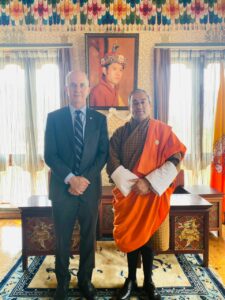 The Foreign Minister met with Mr.Carter Roberts, President and CEO of WWF, USA this morning. The meeting touched on the importance of keeping people at the center of all environmental conservation efforts. Mr.Roberts is visiting Bhutan to attend the Sustainable Financing for Tiger Landscapes Conference taking place from 22 to 23 April 2024 in Paro.