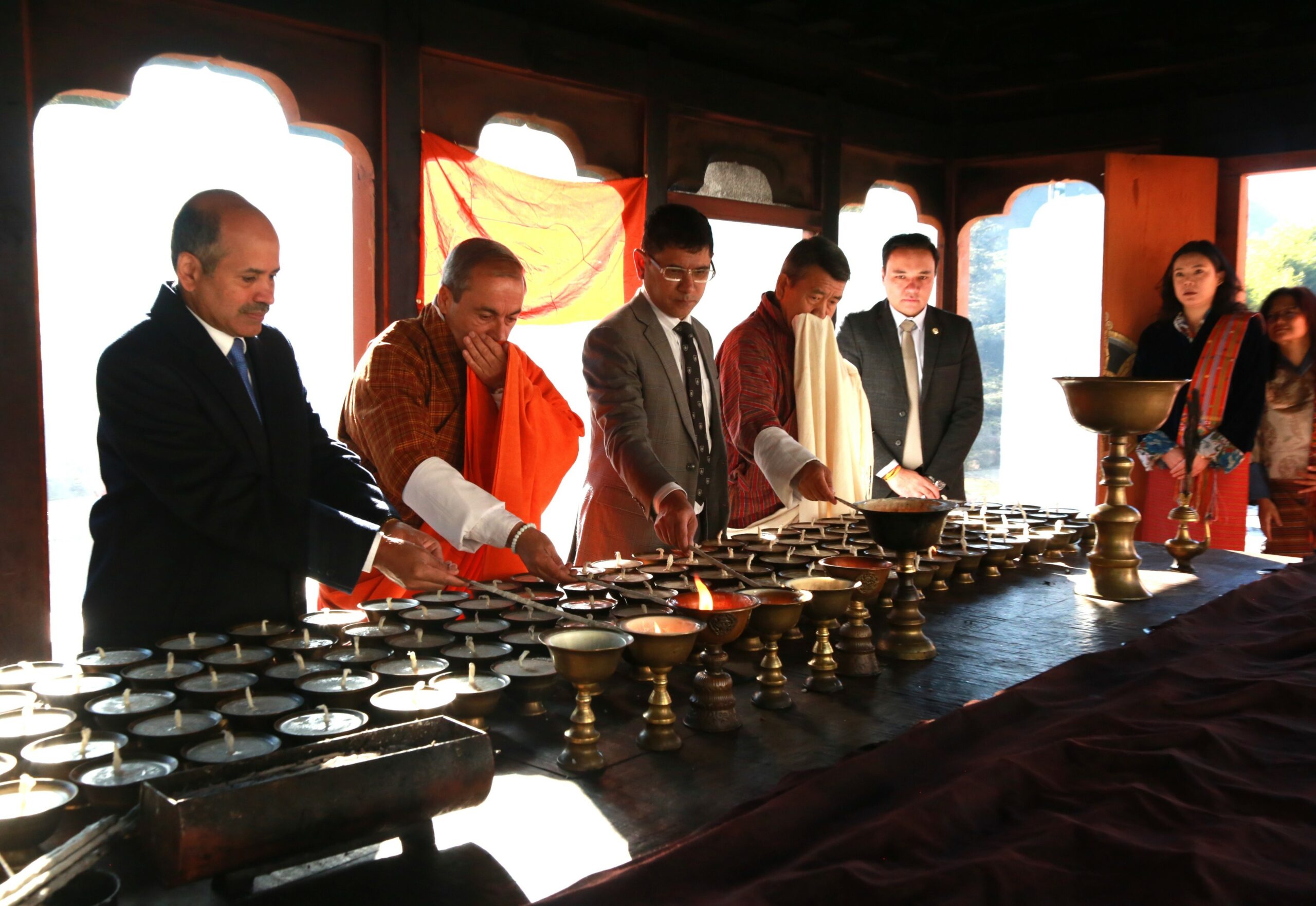 Bhutan marked the 40th Anniversary of the Charter of the South Asian Association for Regional Cooperation (SAARC) today at Tara Lhaden Zhingkham Lhakhang in Pangrizampa. The occasion was observed with the lighting of a thousand butter lamps and the offering of special prayers to honor this significant milestone in regional cooperation.