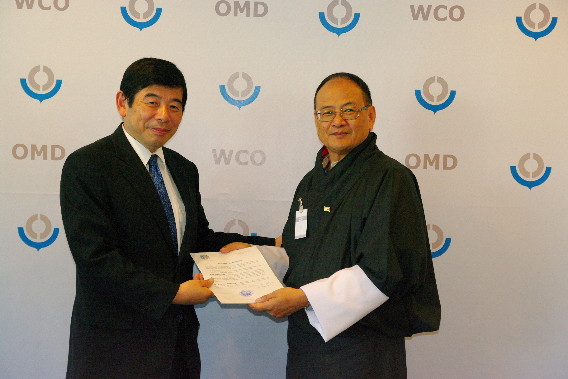 Bhutan’s instruments of accession to the International Convention on the Simplification and Harmonization of Customs Procedures (Revised Kyoto Convention) was on Monday 15th September 2014 deposited at the World Customs Organisation (WCO) headquarters in Brussels, Belgium by the Bhutanese Ambassador Mr. SonamTshong. He thanked the WCO for its generous support to the development of the customs sector in Bhutan and said that the Royal Government valued its cooperative relation with the WCO. Mr. KunioMikuriya Secretary General expressing his appreciation said that deposition of the Instrument was a clear affirmation of the commitment of Bhutan to the international customs regime.Read More