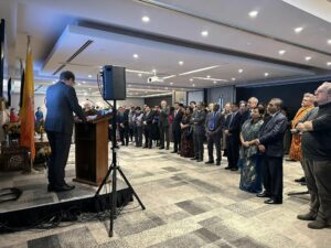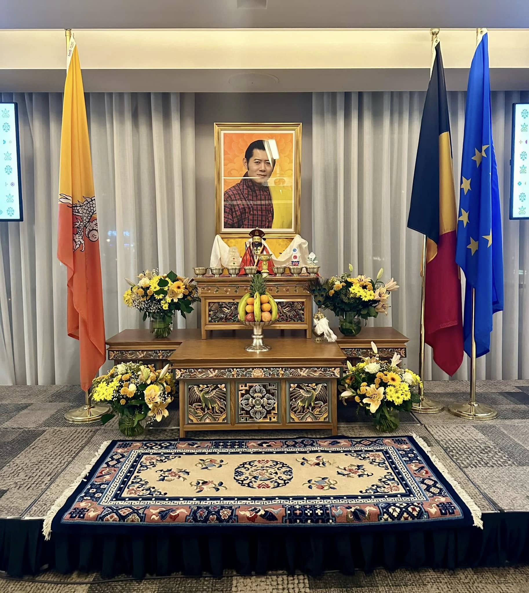 The Royal Bhutanese Embassy in Brussels joined the Nation in celebrating the joyous occasion of the 117th National Day of Bhutan on 17 December 2024. The officials and staff led by Kutshab gathered at the Embassy in the morning to offer butter lamps, National Anthem and Zhabten for the long life of His Majesty The King.