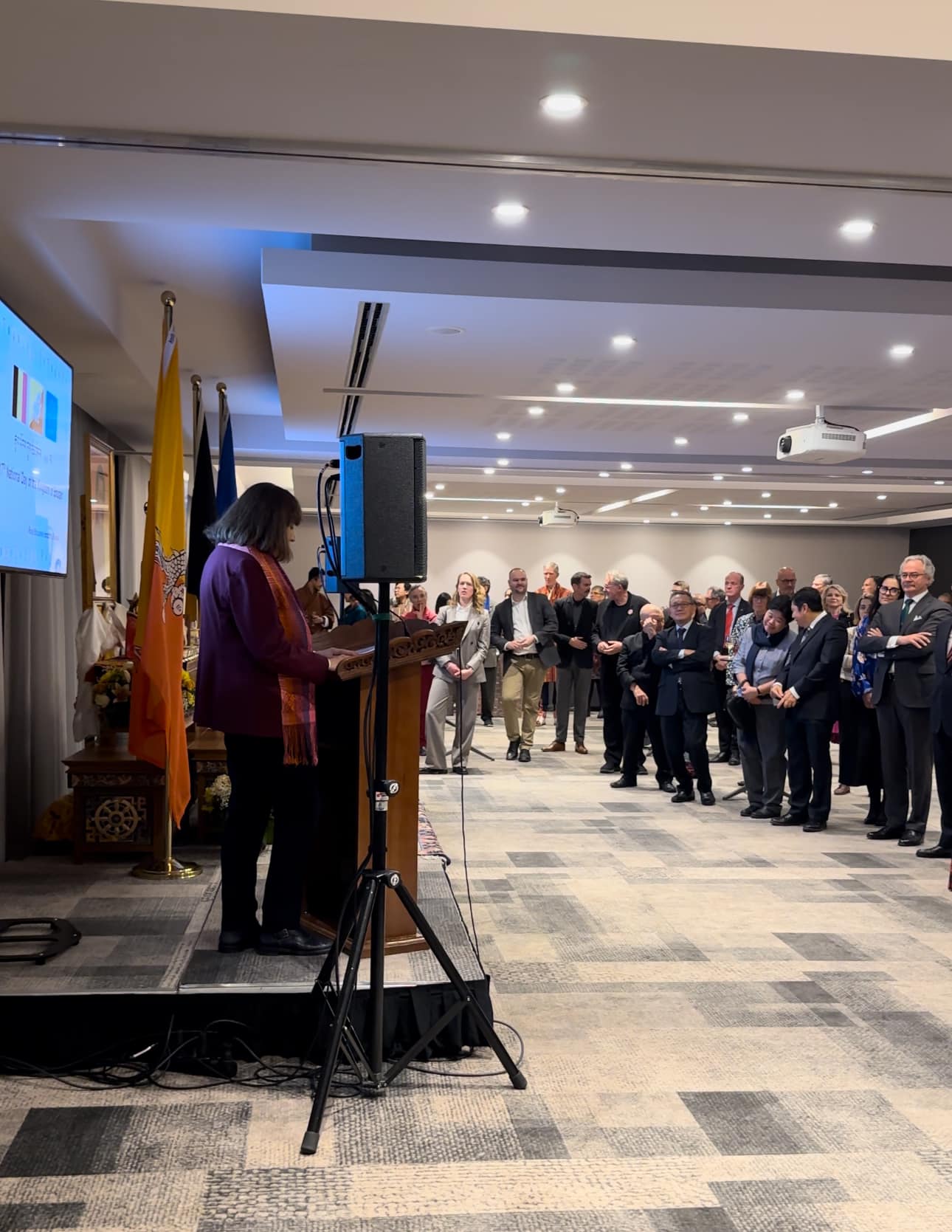 In the evening, Ambassador Tshoki Choden hosted a reception at Sofitel Brussels, attended by officials of the Belgian government and European Union, members of the Diplomatic Corps, Honorary Consuls, Members of Friendship Associations of Bhutan in Europe and Bhutanese studying/ residing in Belgium and neighboring countries of Germany, France, Liechtenstein, and Netherlands. Ambassador Hubert Roisin, Chief of Protocol of Belgium and Ms. Paola Pampaloni, Deputy Managing Director for Asia and Pacific, European Union graced the Reception as the Guests of Honor.