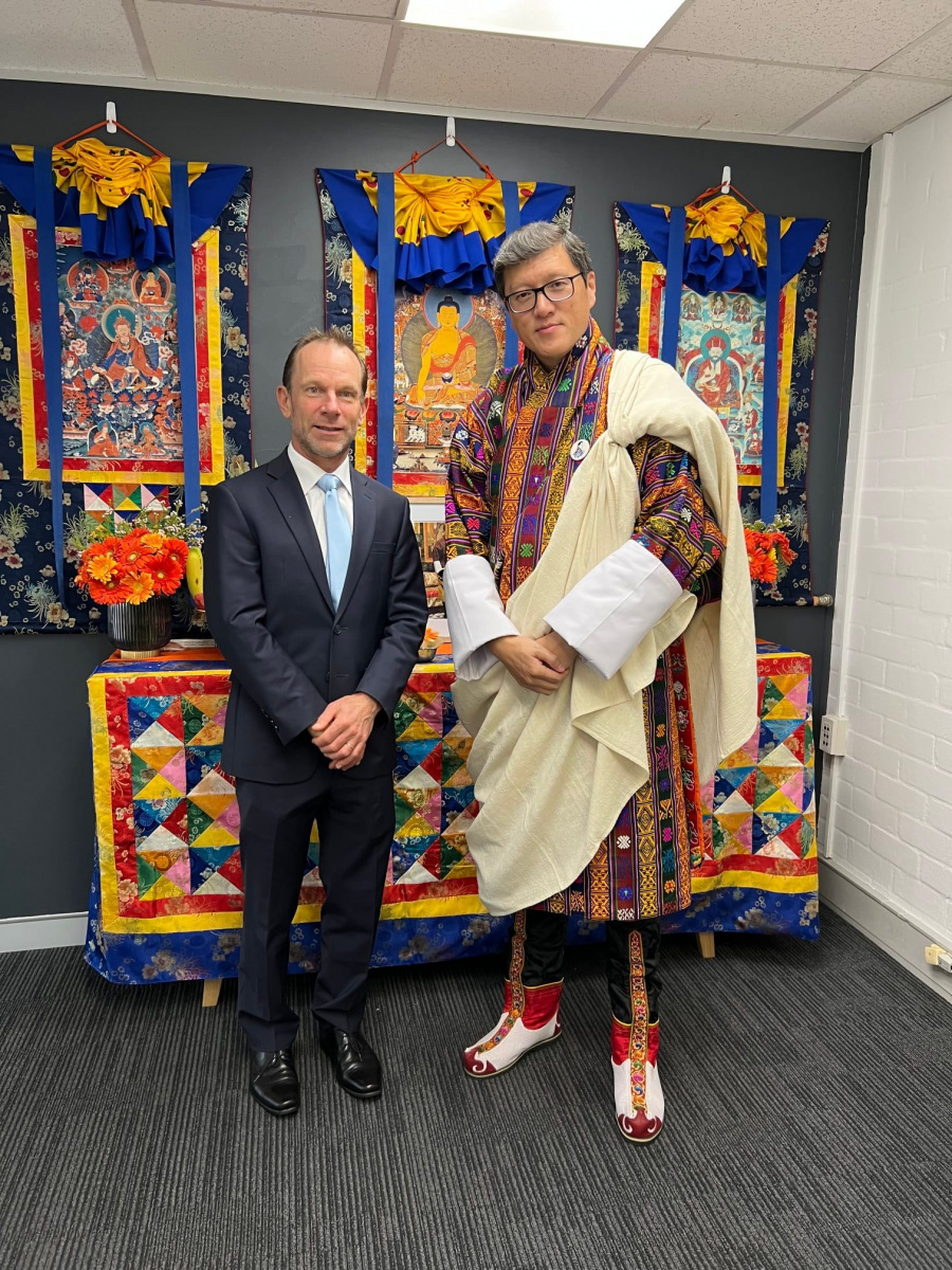 Chief of Protocol Mr. Ian McConville with Ambassador Sonam Tobgay.