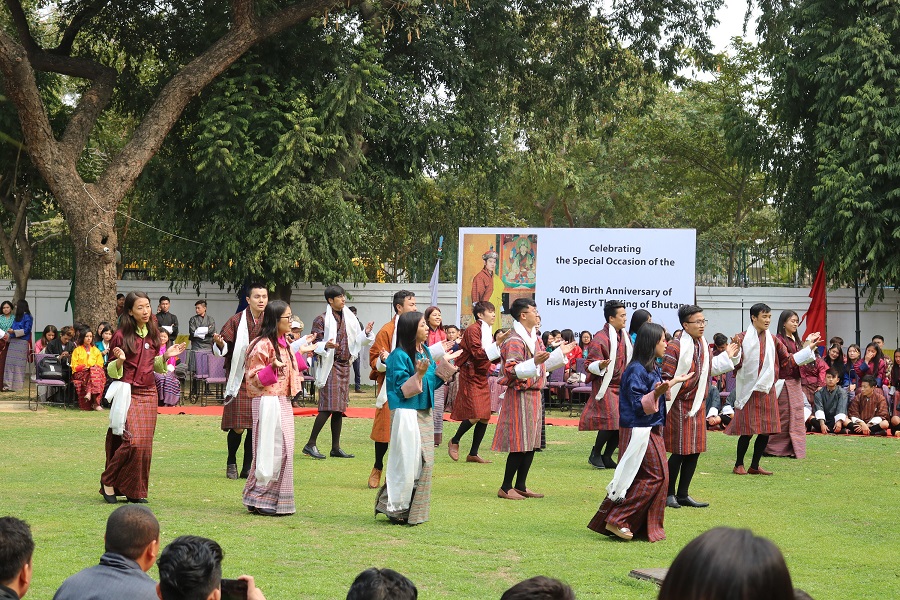 The Royal Bhutanese Embassy, New Delhi joined the nation in celebrating the 40th Birth Anniversary of His Majesty The King of Bhutan on 21 February 2020 at the Royal Bhutanese Embassy. About 400 Bhutanese including Bhutanese working in New Delhi and Bhutanese students studying in and around New Delhi participated in the celebrations.