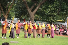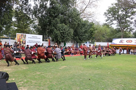 The program then moved to the celebration grounds, which began with the singing of the Zhabten for His Majesty The King and cake cutting ceremony. This was followed by cultural programs by the popular Bhutanese artists from the Film Association of Bhutan, RBE officials and Bhutanese students in and around New Delhi. Celebrations also included other entertainment and games competition among the participants.