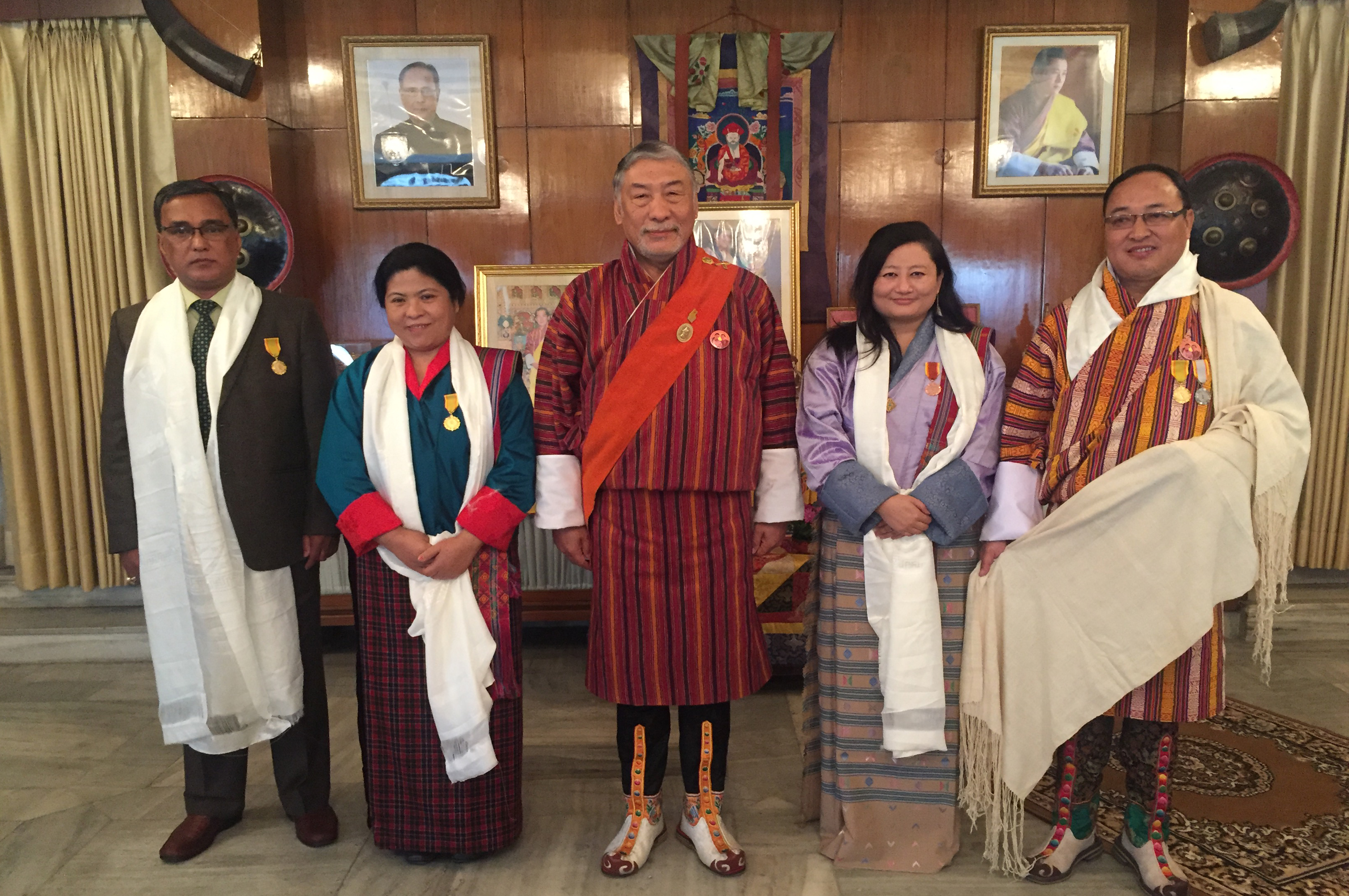 The Civil Servant Award Ceremony for the Royal Bhutanese Embassy, New Delhi was held on 29 December 2016. H.E. Ambassador Major General V. Namgyel awarded the medals to the recipients as follows: