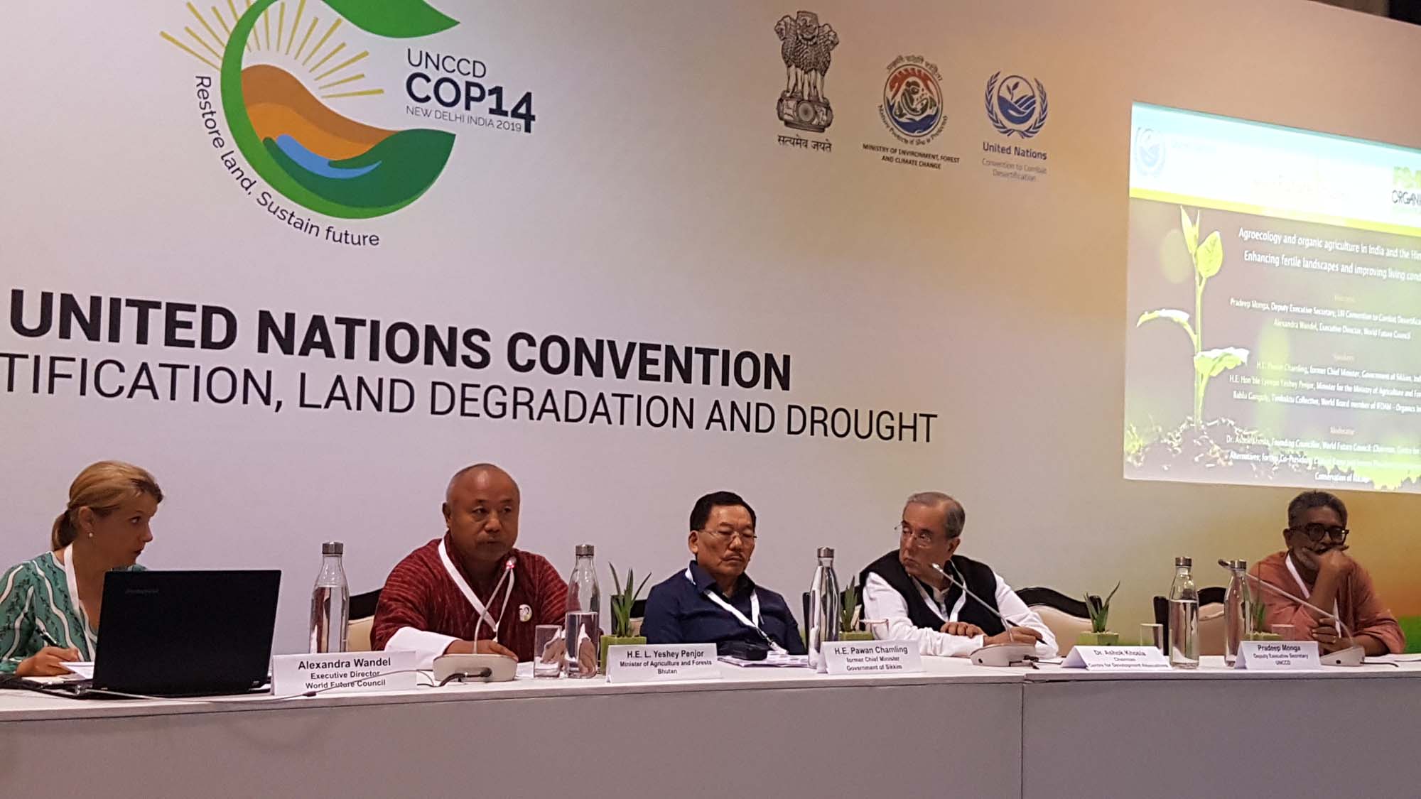 - Lyonpo Yeshey Penjor, Minister of Agriculture & Forests led Bhutan’s delegation to the High-Level Segment of the UNCCD COP14 from 9-10 September 2019 held at India Expo Mart Ltd., Greater Noida. Lyonpo was accompanied by the Ambassador of Bhutan in India and senior Government officials from the Ministry of Agriculture & Forests and Royal Bhutanese Embassy, New Delhi.