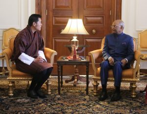 President of India Shri Ram Nath Kovind extended a warm welcome to His Majesty King Jigme Khesar Namgyel Wangchuck, Her Majesty The Gyaltsuen, and His Royal Highness The Gyalsey at the Rashtrapati Bhawan this morning. His Majesty The King and the President expressed their happiness with the strong bonds of friendship between the two countries defined by trust and confidence in each other. His Majesty The King was happy to accept the President’s invitation for a State Visit to India next year as the two countries celebrate the 50th Anniversary of formal diplomatic ties.