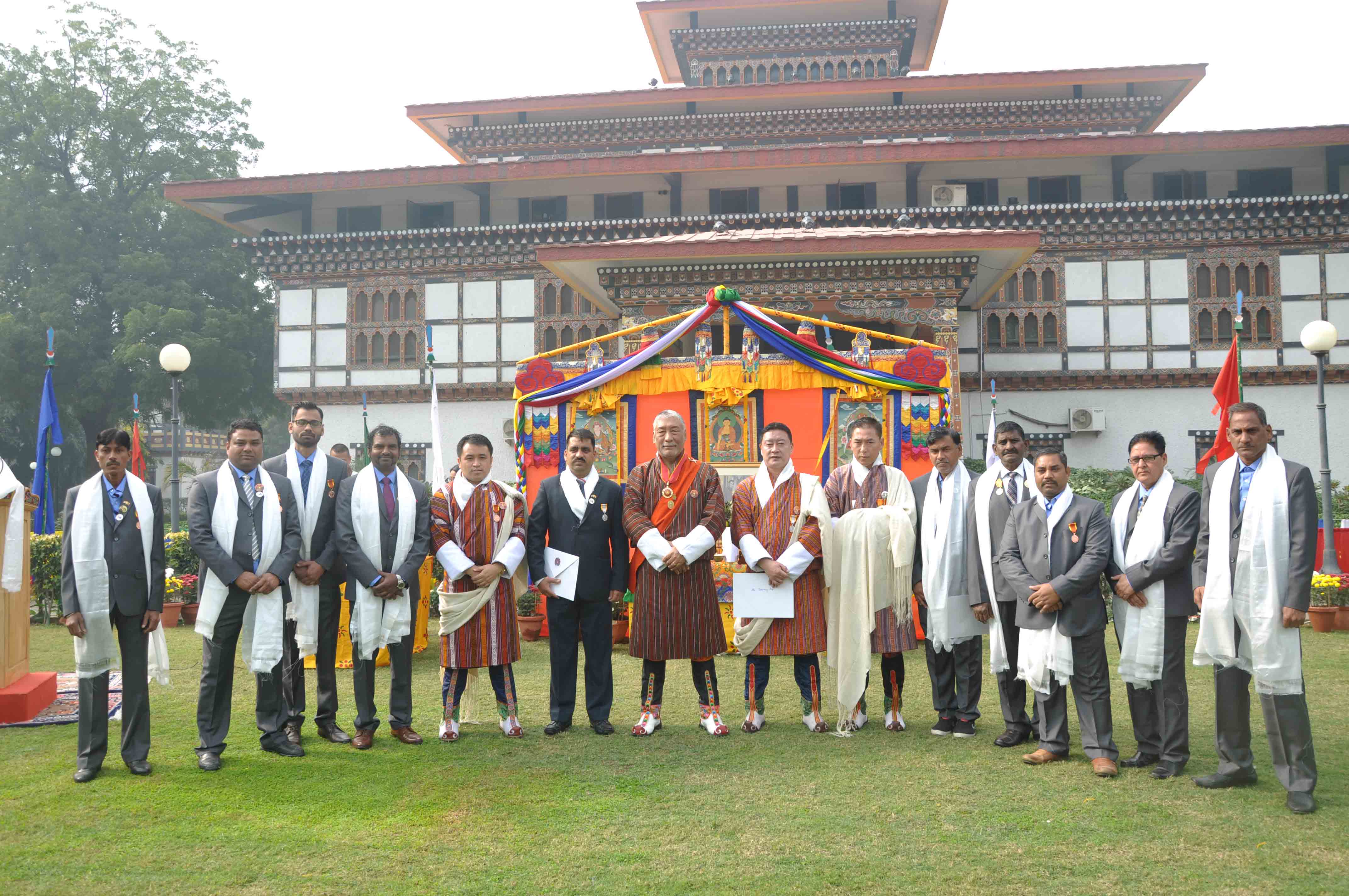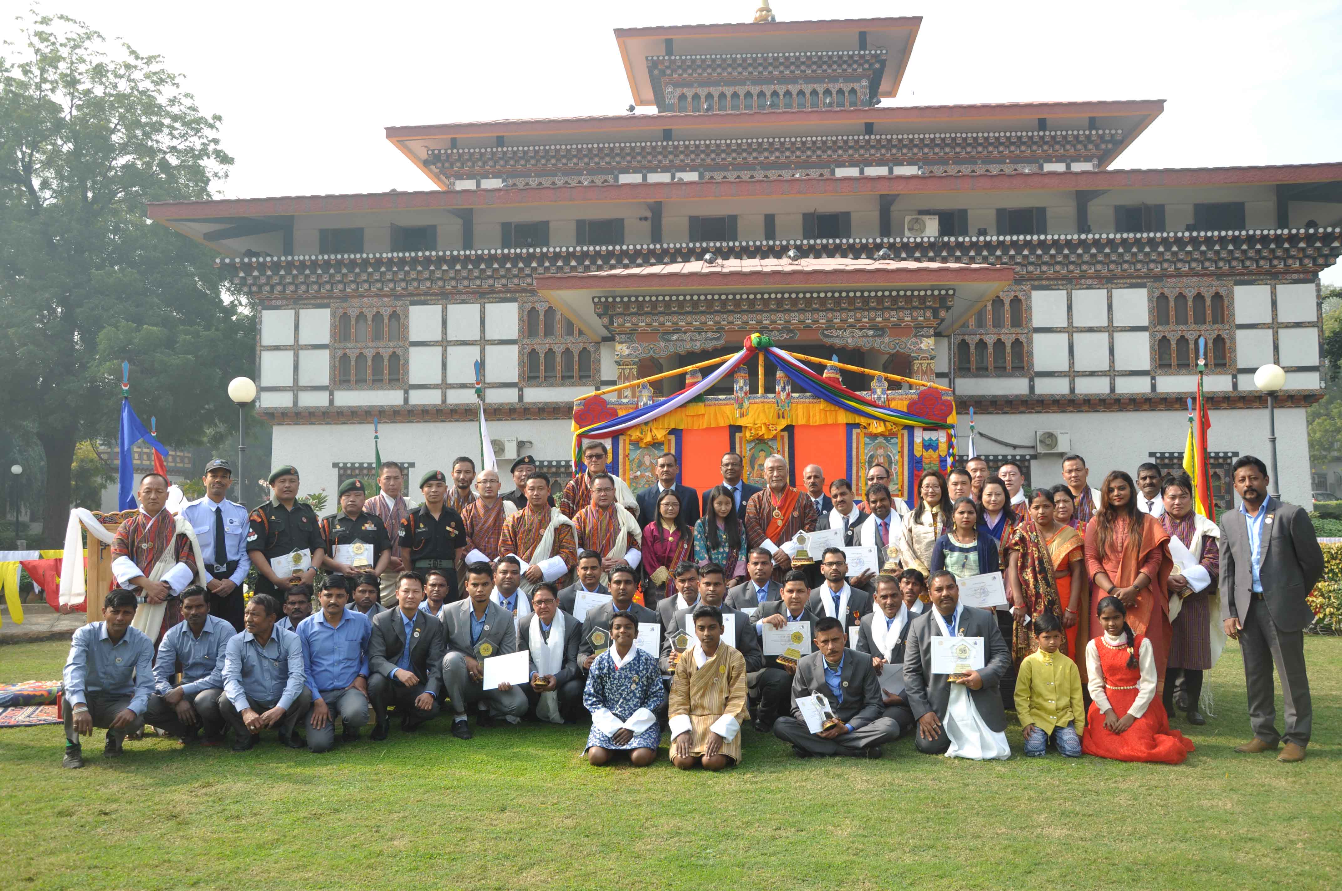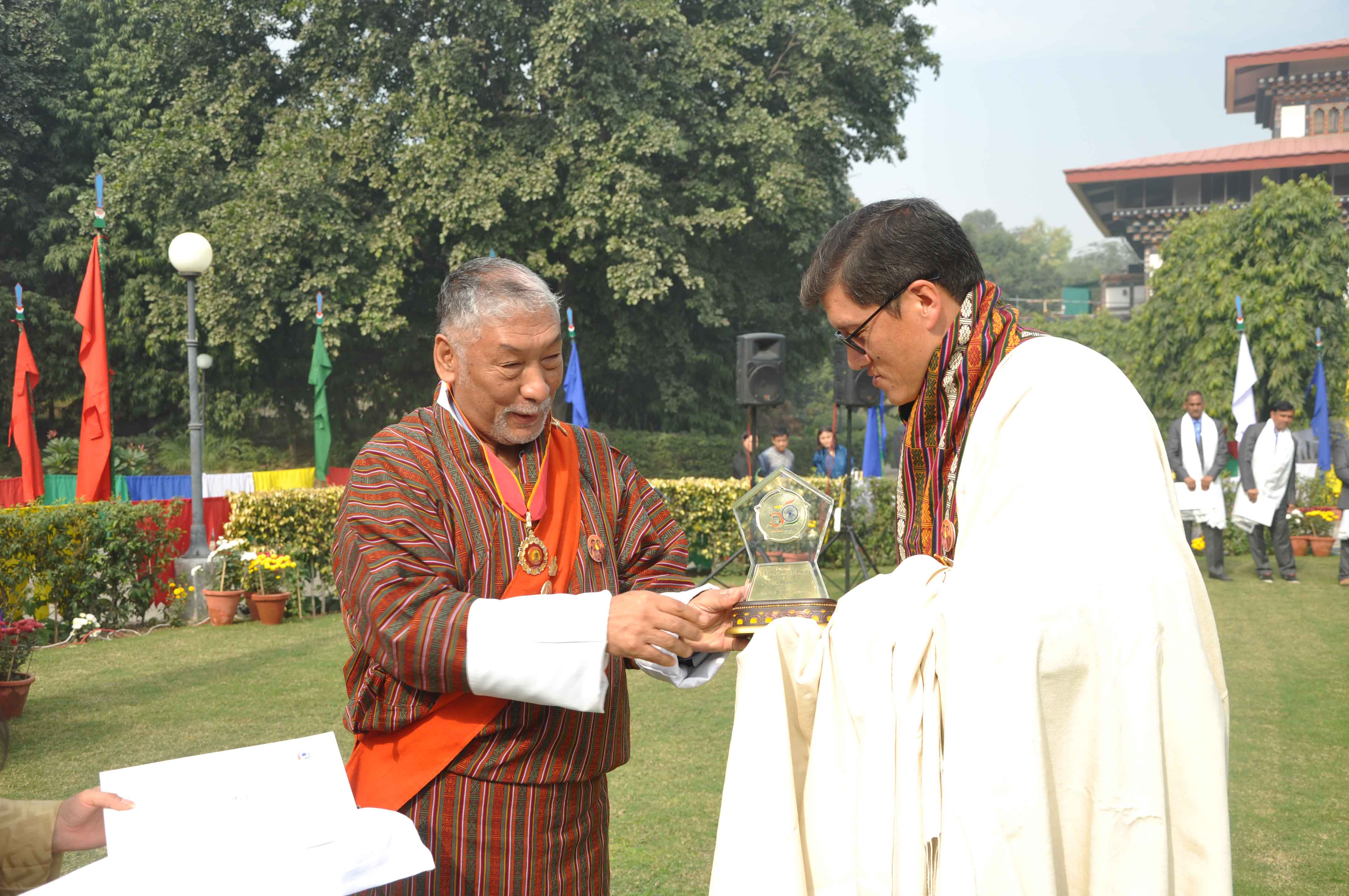 During the celebration, Ambassador Maj. General V. Namgyel awarded the civil service medals to two officers for their dedicated service to the Tsa-Wa-Sum for more than 20 years and one officer and ten local staff of the Embassy for their dedicated service to the Tsa-Wa-Sum for more than 10 years. Ambassador Namgyel also awarded the certificates and memento to the Officers and Staff of the Embassy for their hard work in coordinating many events to commemorate the 50th Anniversary of establishing diplomatic relations between India and Bhutan.
