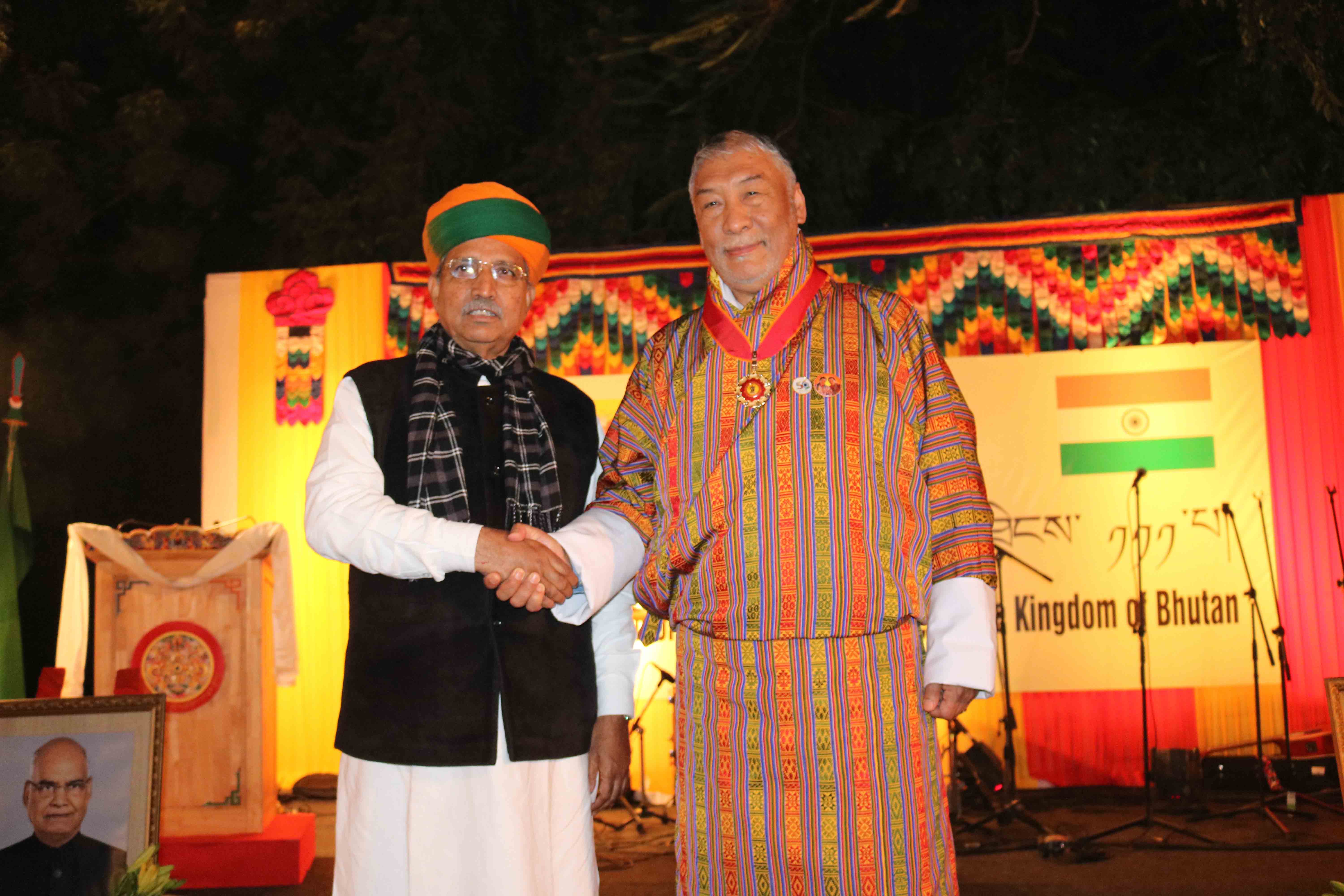 Later In the evening the Royal Bhutanese Embassy hosted a delightful reception at the Ambassador’s residence to mark the 111th National Day. H.E. Shri Arjun Ram Meghwal, Union Minister of State in Ministry of Water Resources, River Development & Ganga Rejuvenation and Parliamentary Affairs of the Government of India graced the occasion as the Chief Guest.