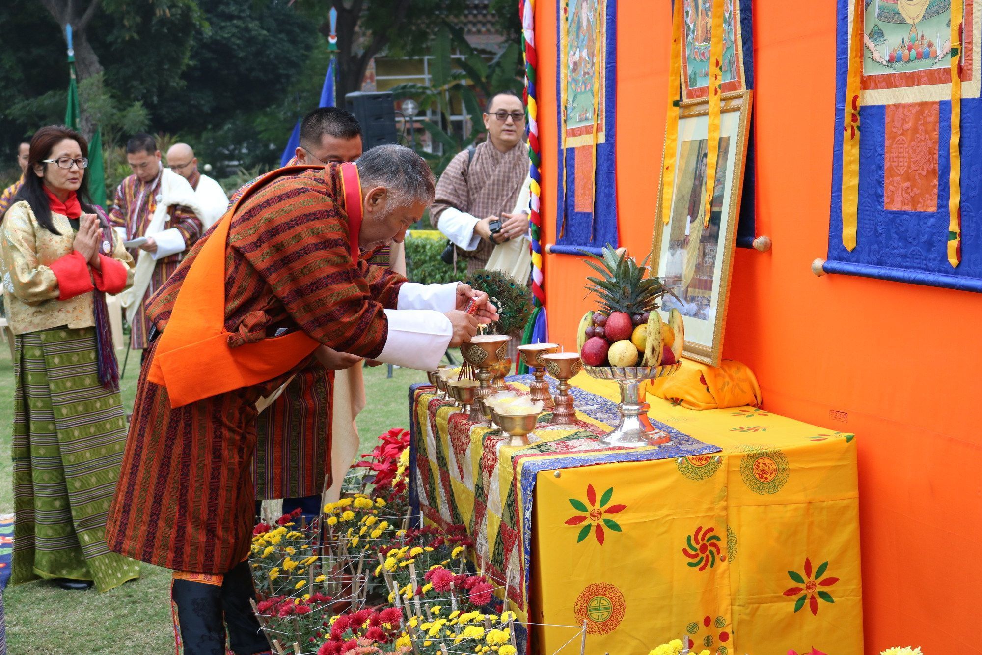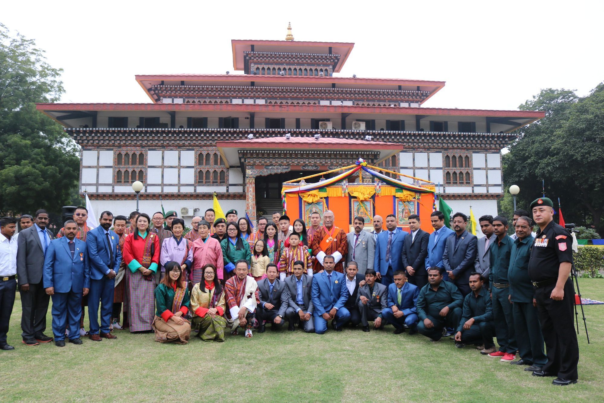 The Royal Bhutanese Embassy in New Delhi celebrated the joyous occasion of the 112th National Day of Bhutan at the Royal Bhutanese Embassy on 17 December 2019. The Officers, Staff and the Bhutanese community joined the celebrations. The celebration began with the hoisting of the National flag at the Embassy in the morning.