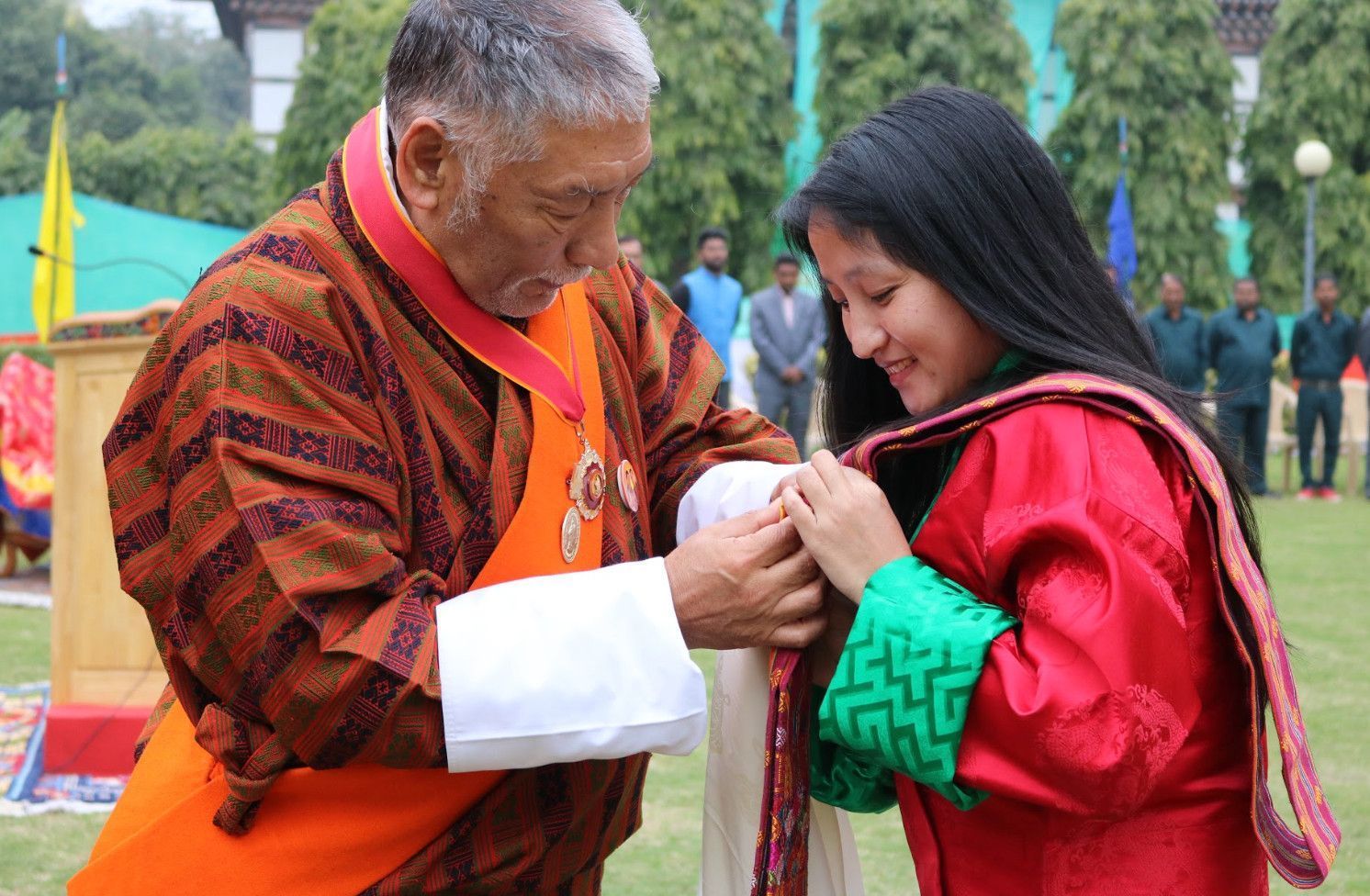 During the Celebration, Ambassador Maj. General V. Namgyel awarded the civil service medal to one officer for her dedicated service to the Tsa-Wa-Sum for more than 10 years.
